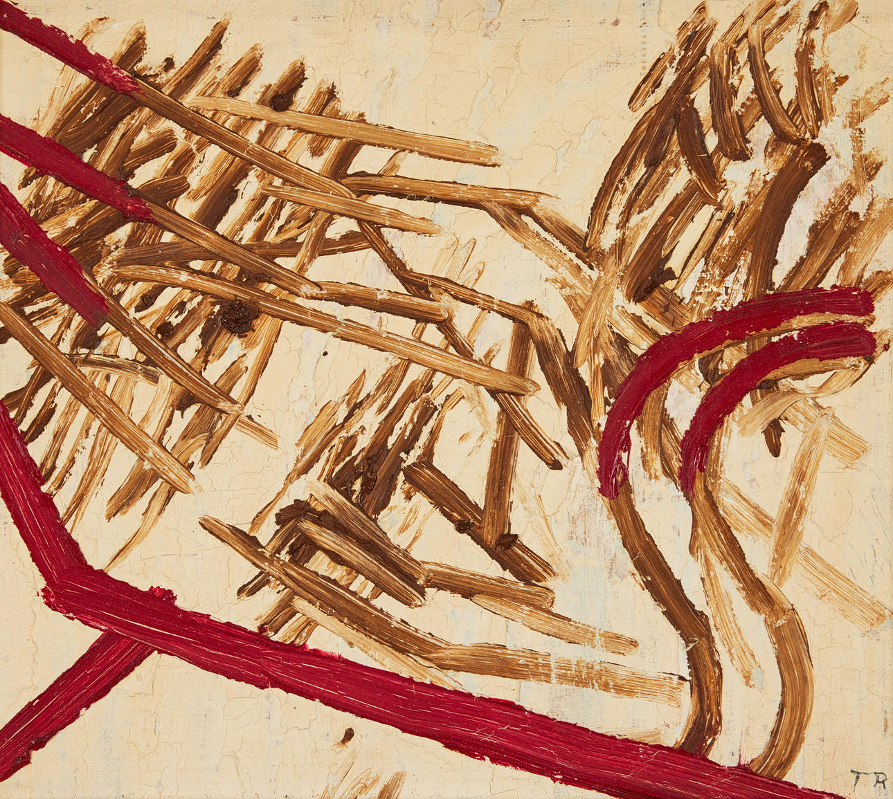 Olja på pannå, 24,5 x 28,5 cm. Signerad T.R