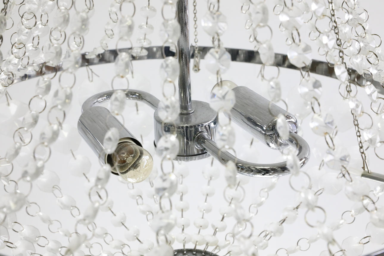 Klara prismor, krom, 2 ljuspunkter. Höjd till takkopp 83 cm Diameter 40 cm.