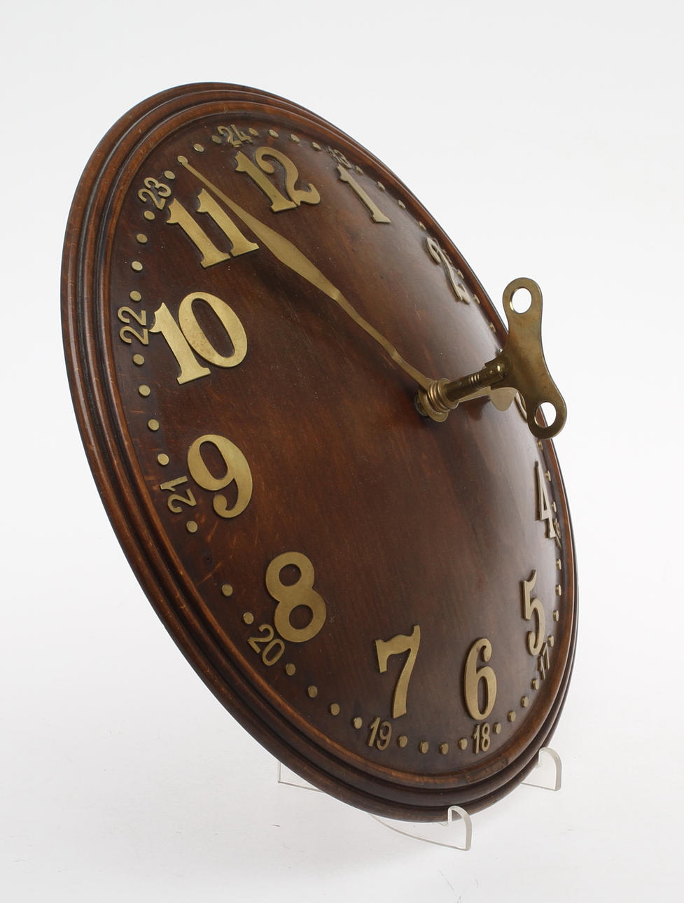 En "minutprick", samt dekorelement i nederkant saknas. Minutvisaren bucklig.