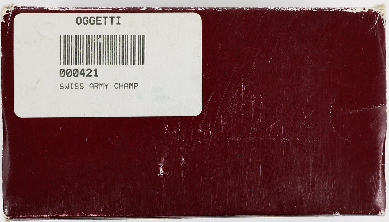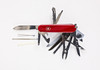 multikompakt, fickkniv med 33 olika funktioner, komplett med låda och papper, 5cm x 12cm x 7cm.