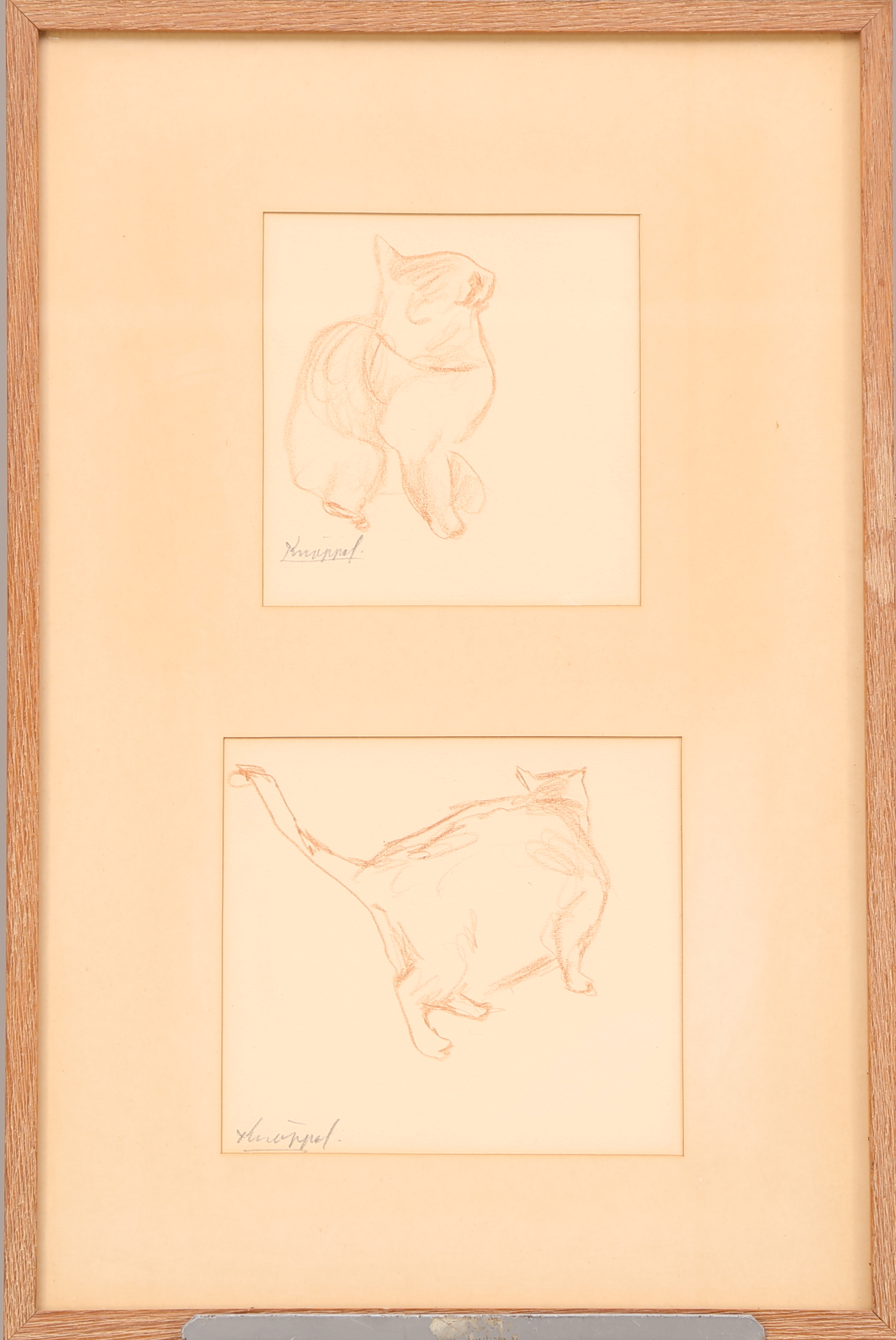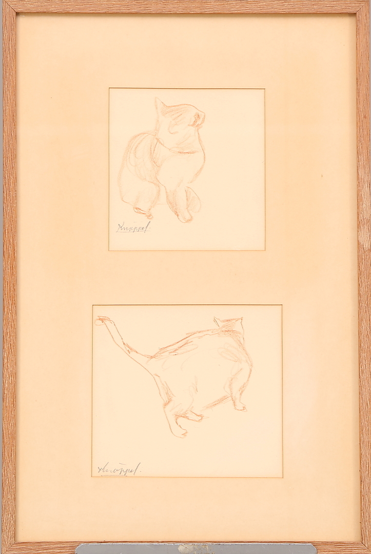 400440. ARVID KNÖPPEL. "Kattstudier", brunkrita, signerad Knöppel.