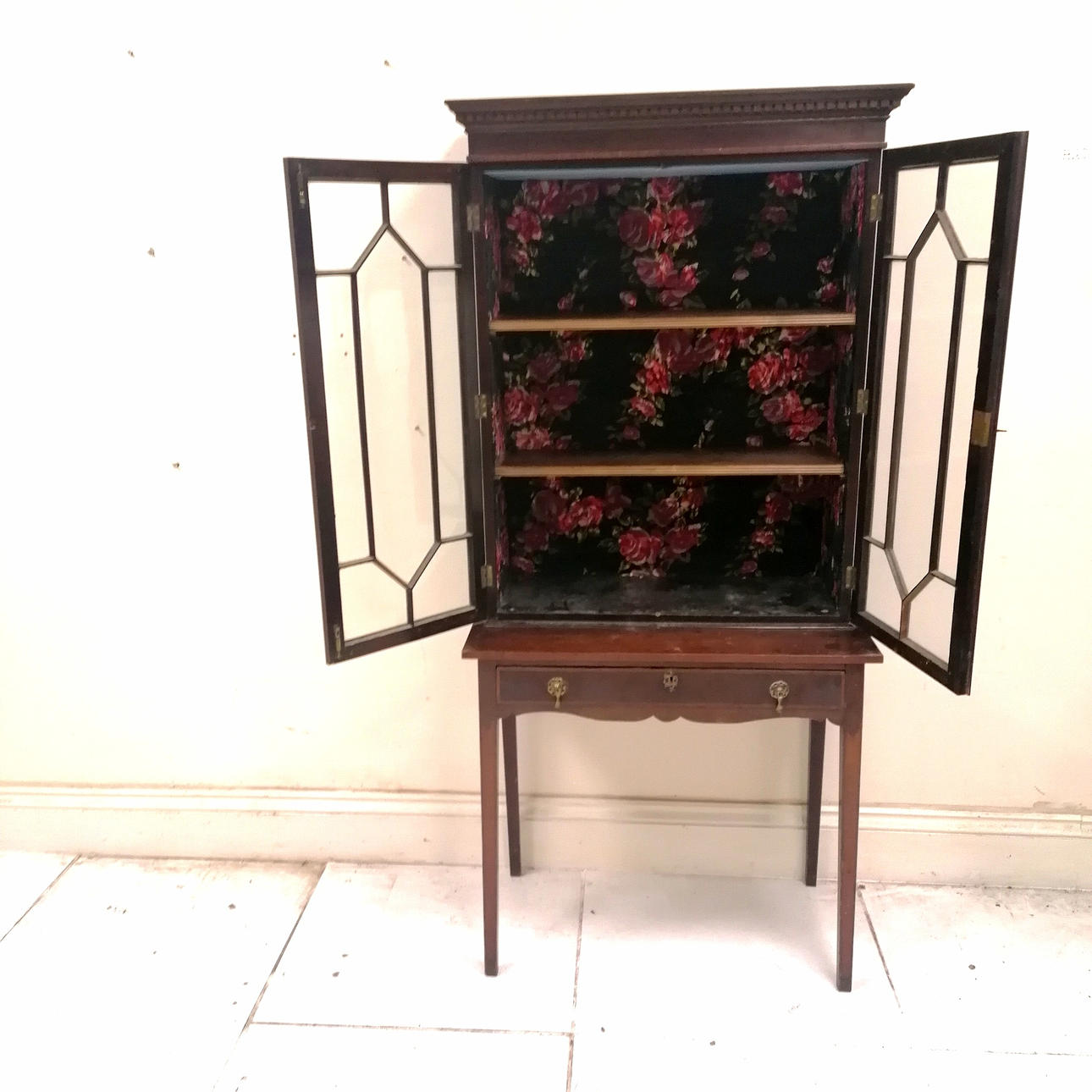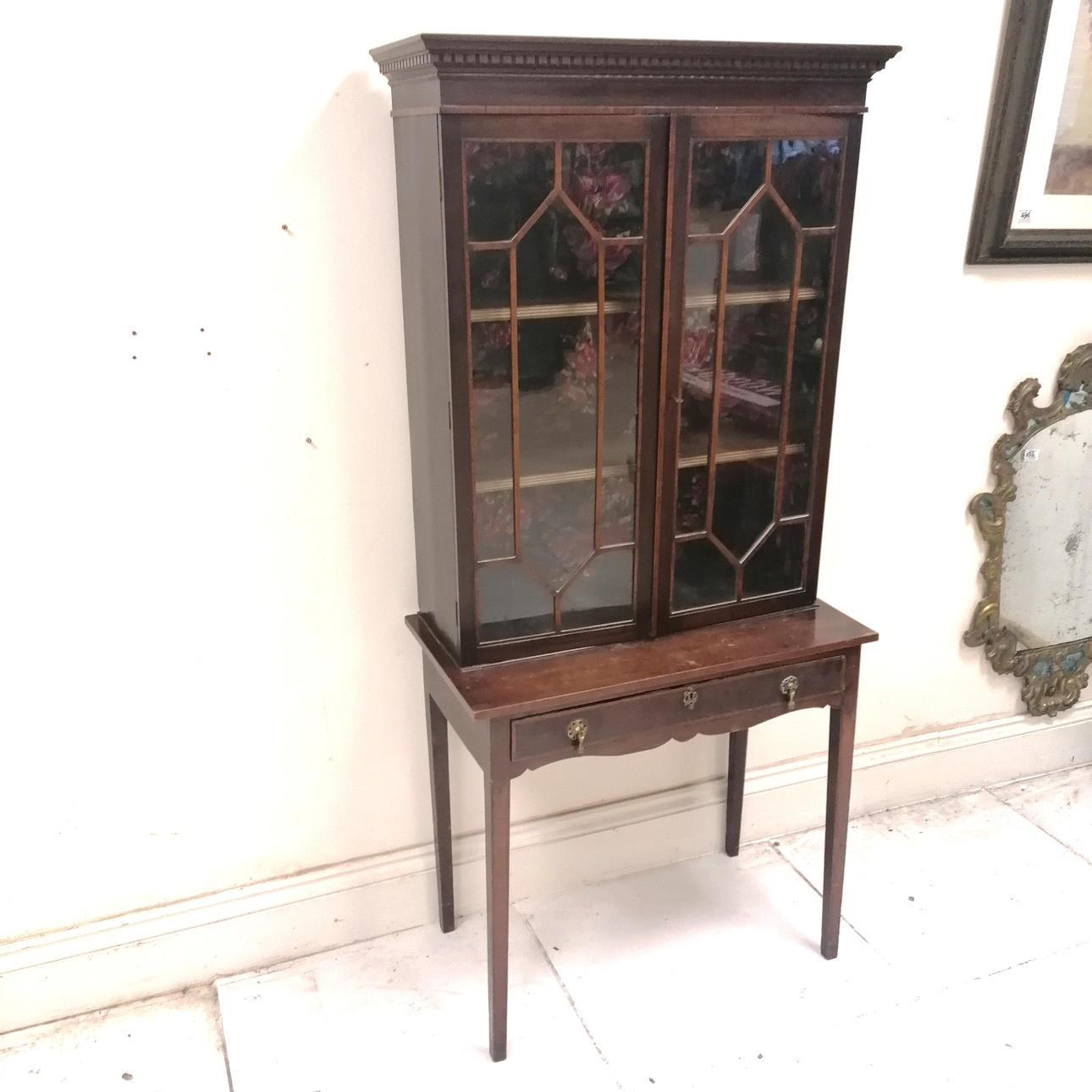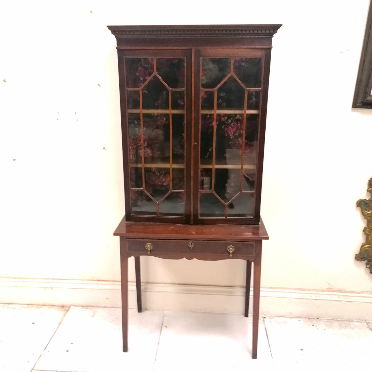 Antik mahogny 2-dörrars glasskåp med enkel lådbas - 166cm hög x 77cm bred x 41cm djup ~ har astrala glasyrdörrar och inlägg (med nyckel).