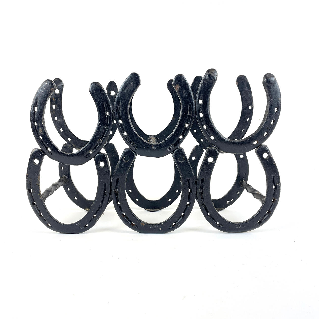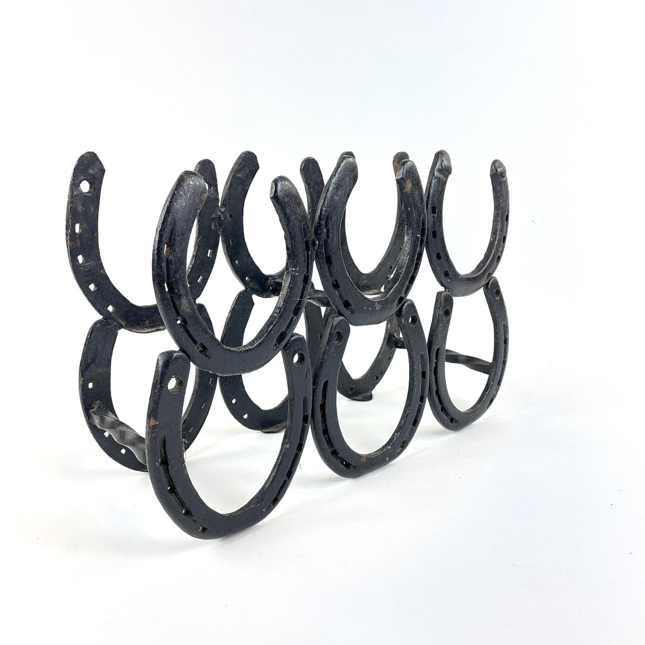 4007073. VINSTÄLL av hästskor, svartmålat smide.