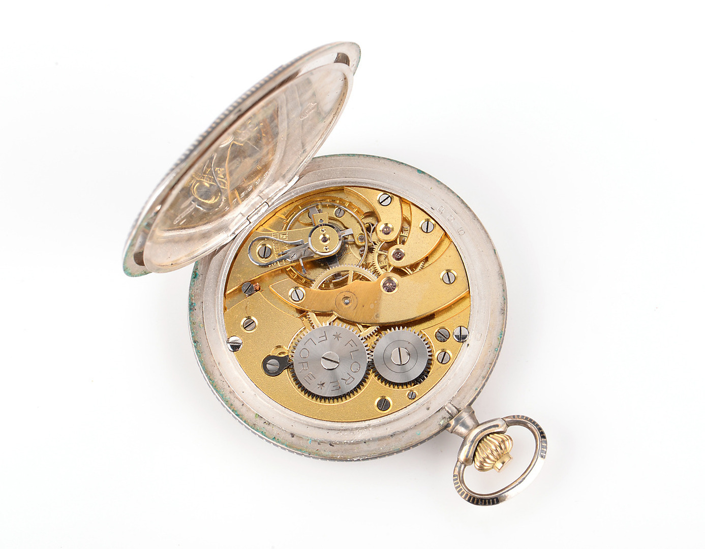 401098. FLORE / CLÉMENCE FRERE & CIE. FICKUR, kronometer. silverhalt 800 Niello / Thula.