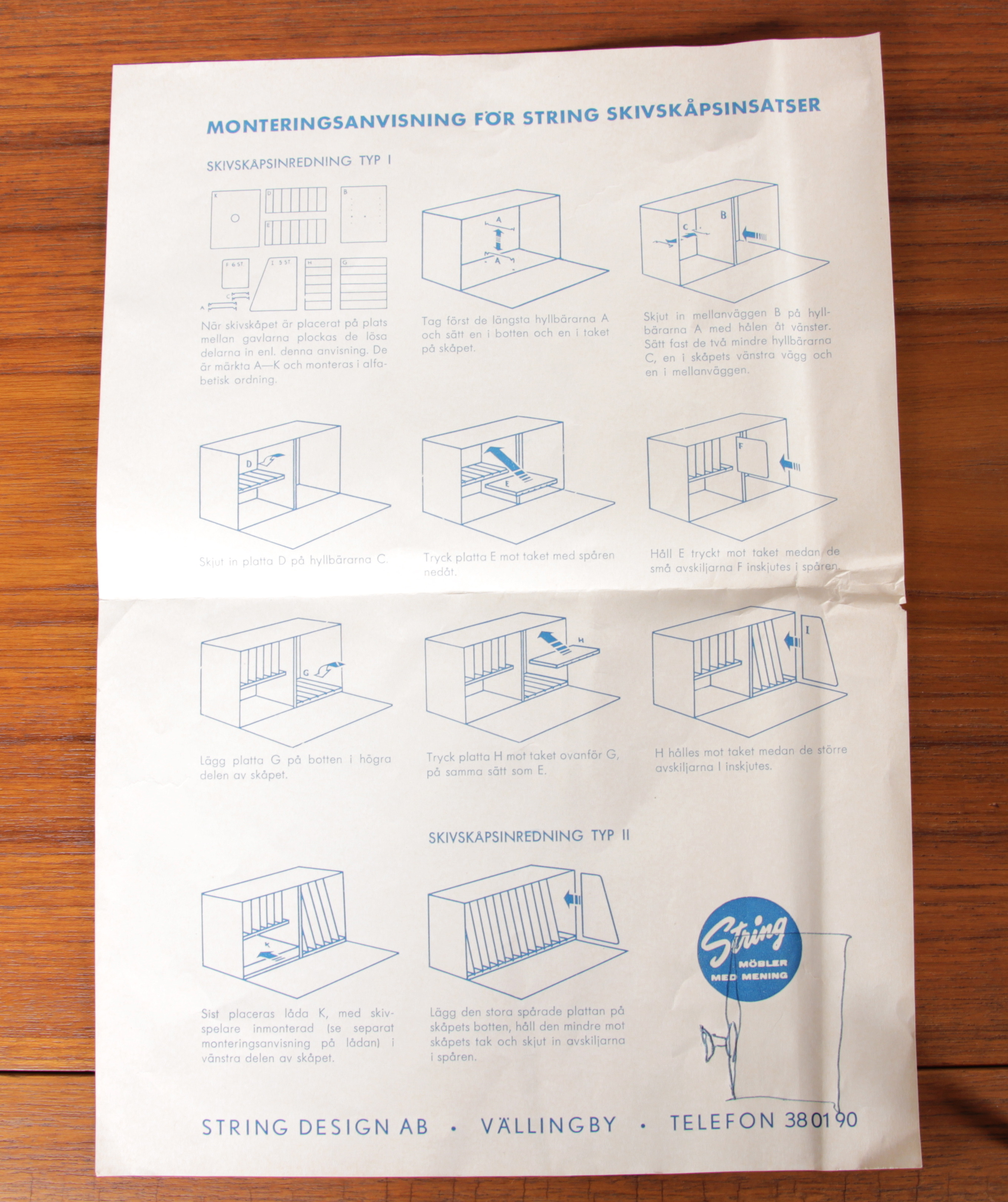 401212. SKIVSKÅP, 2 st. Teak, String Design AB, 1900-talets mitt.