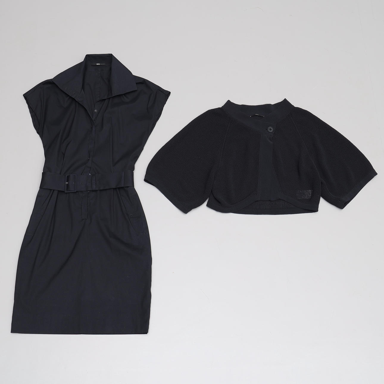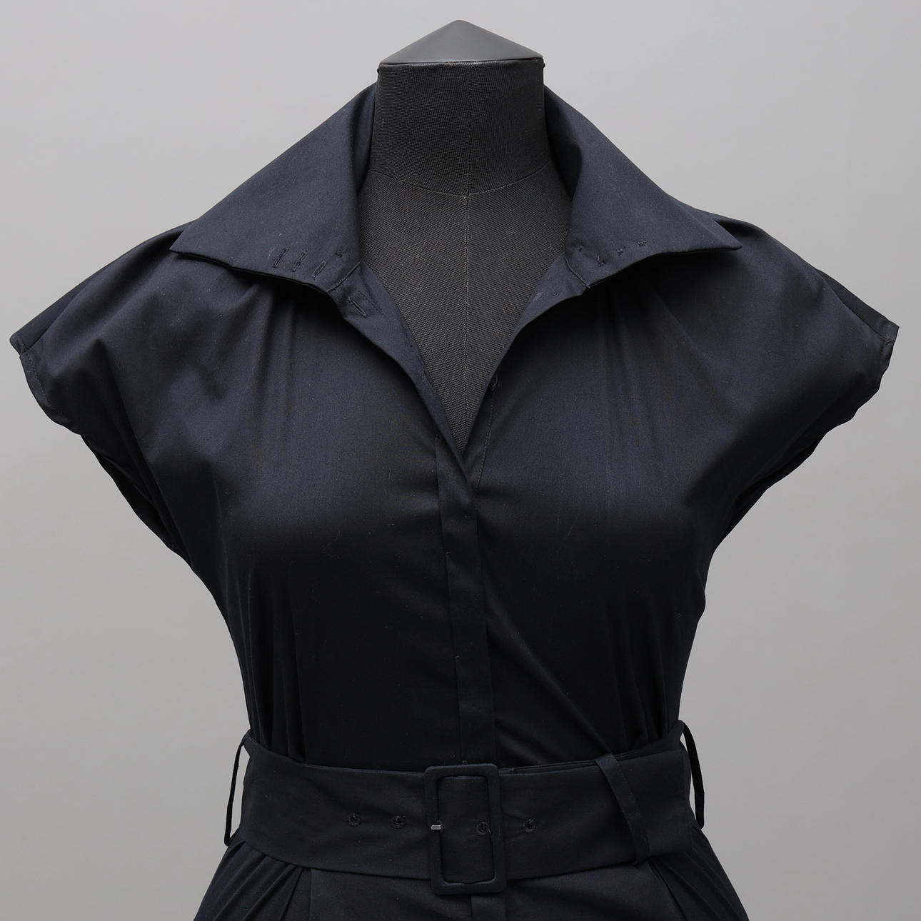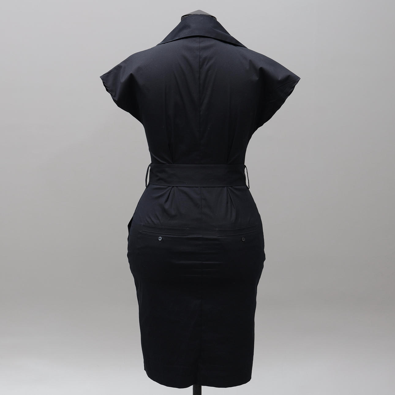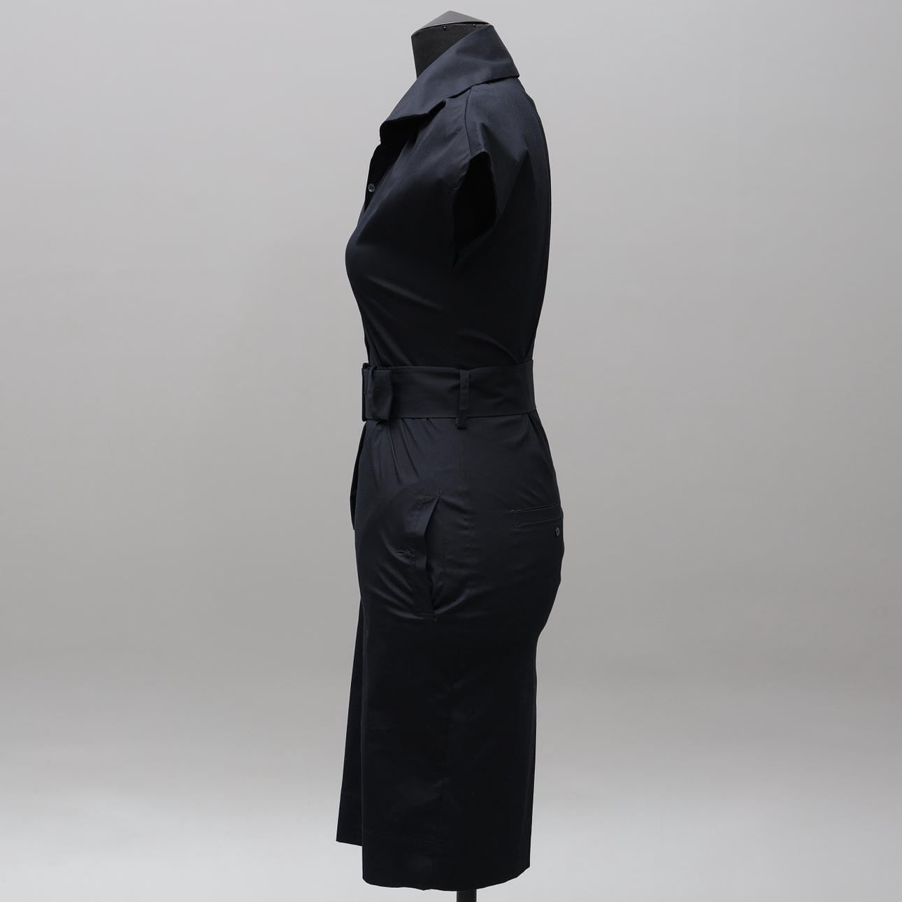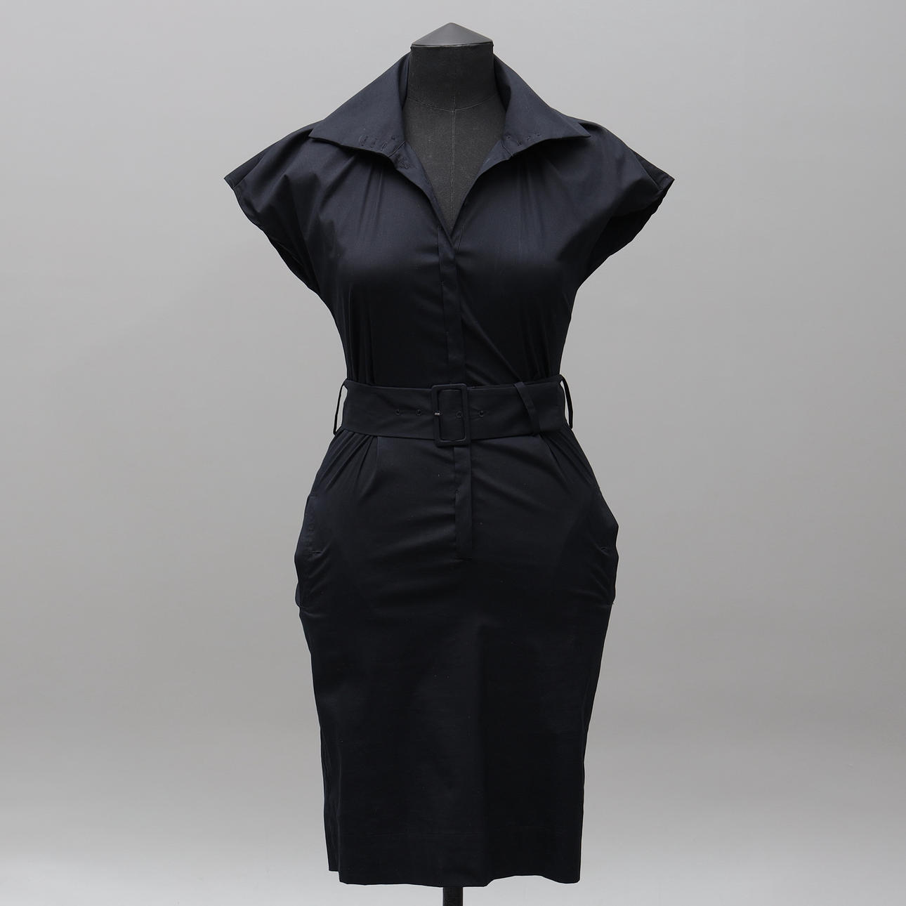 Skjortklänning med skärp i midjan, bomull samt polyester, stl 36, längd 99 cm.