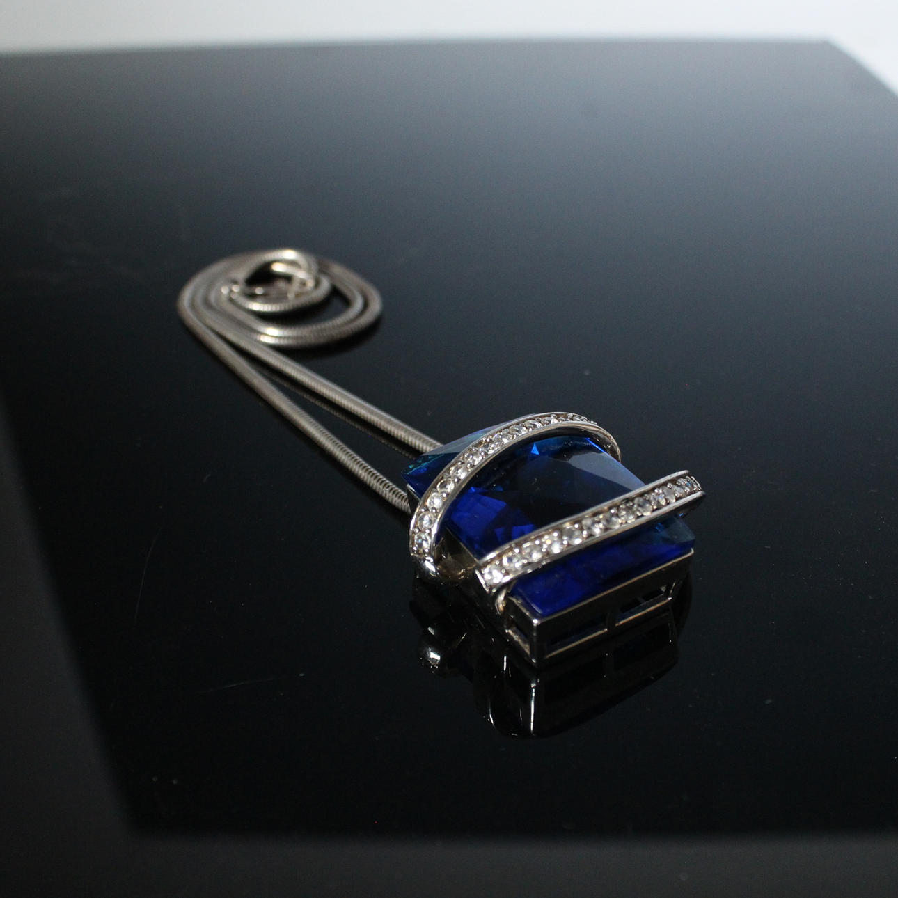 Modesmycken halsband, 925, tillverkat av 925 silver. Blå glasstenar och små glasstenar. Hängets mått, h. 3,5 cm. B. 4,3 cm.. Kedjelängd: ca. 50 cm.