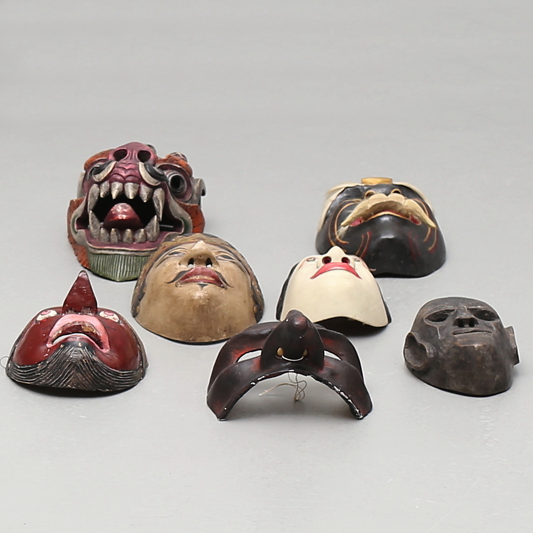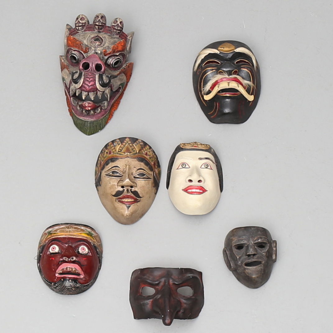 401520. MASKER, 7 st, bl. a. Java och Nepal, 1900-talets andra hälft.
