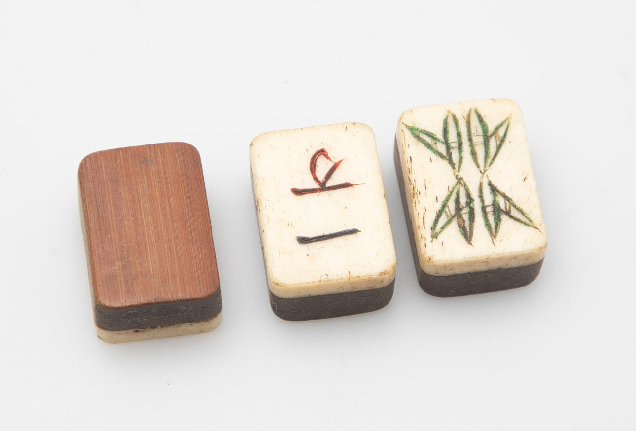 Ben och bambu Ca. 135 tegelstenar I trälåda, märkt på insidan. ca 7,5 x 20,5 x 12 cm.