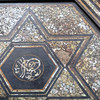 Svärtat trä och inläggningar av pärlemor. Höjd 64 cm, diameter 72 cm.