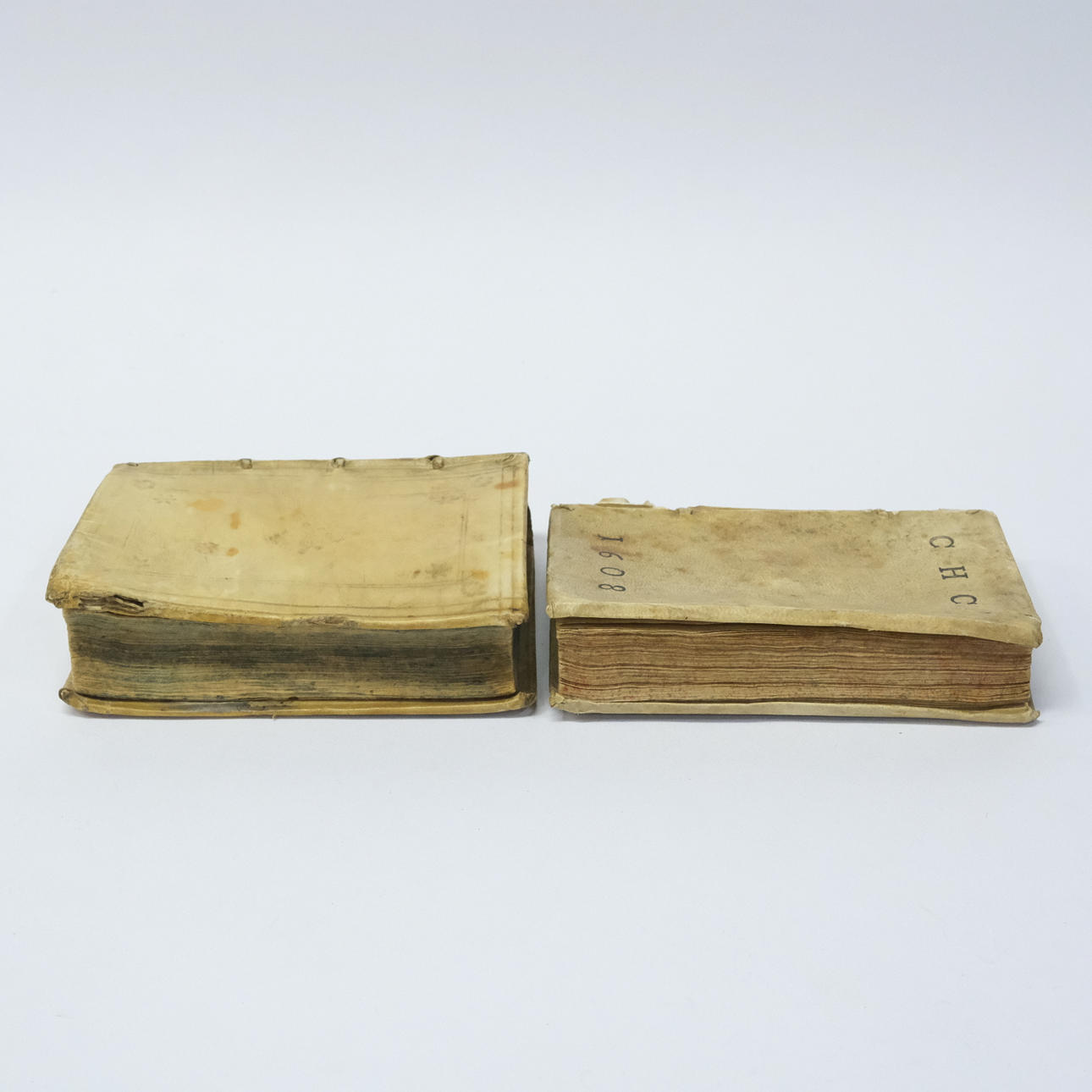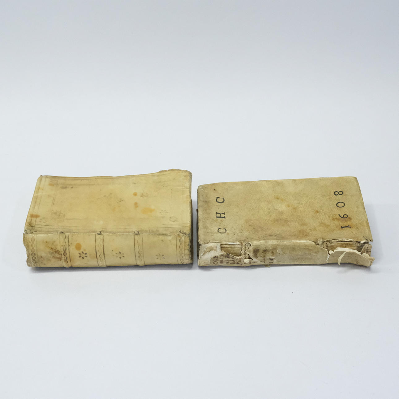 4017135. TVÅ PERGAMENTBAND, 1604 och 1608.