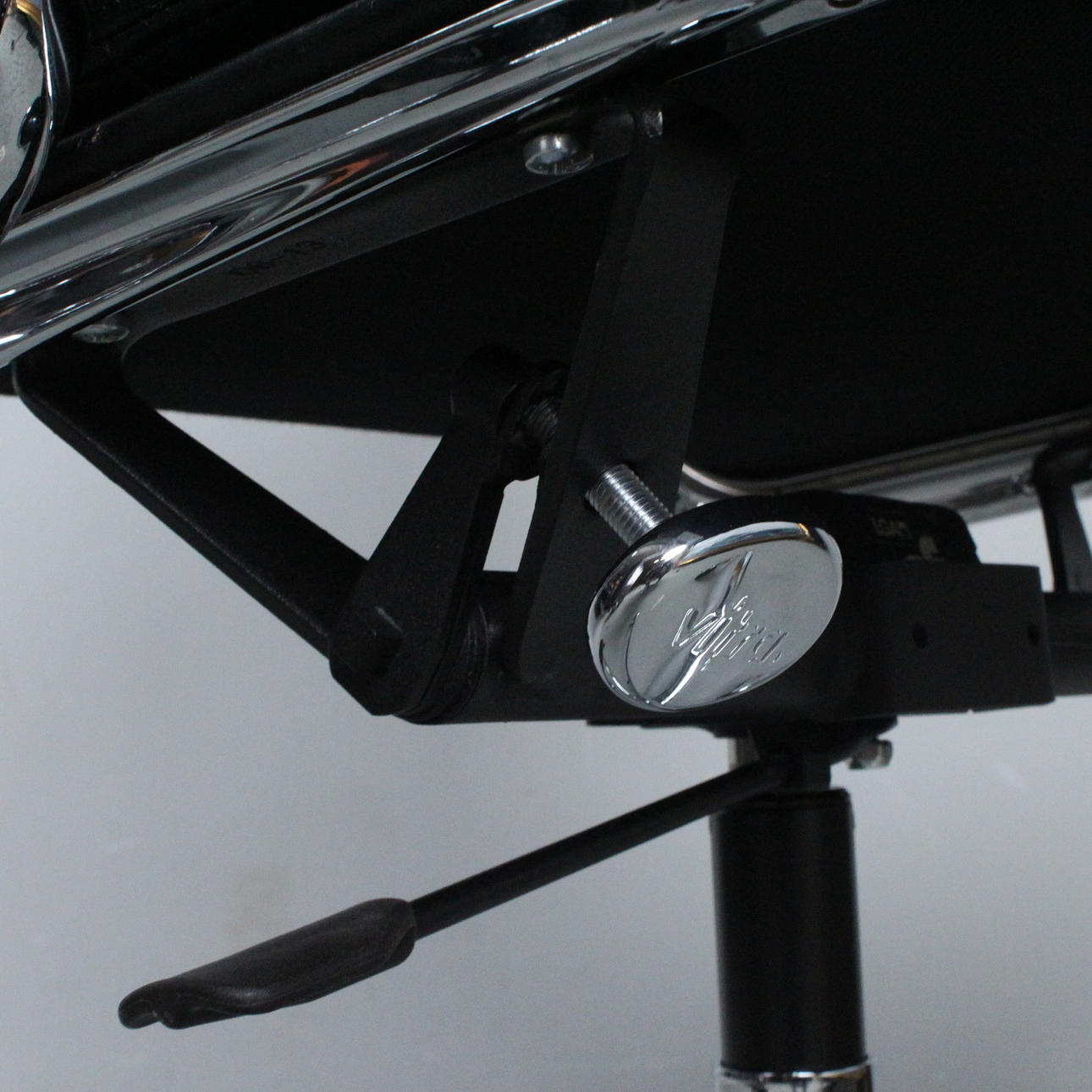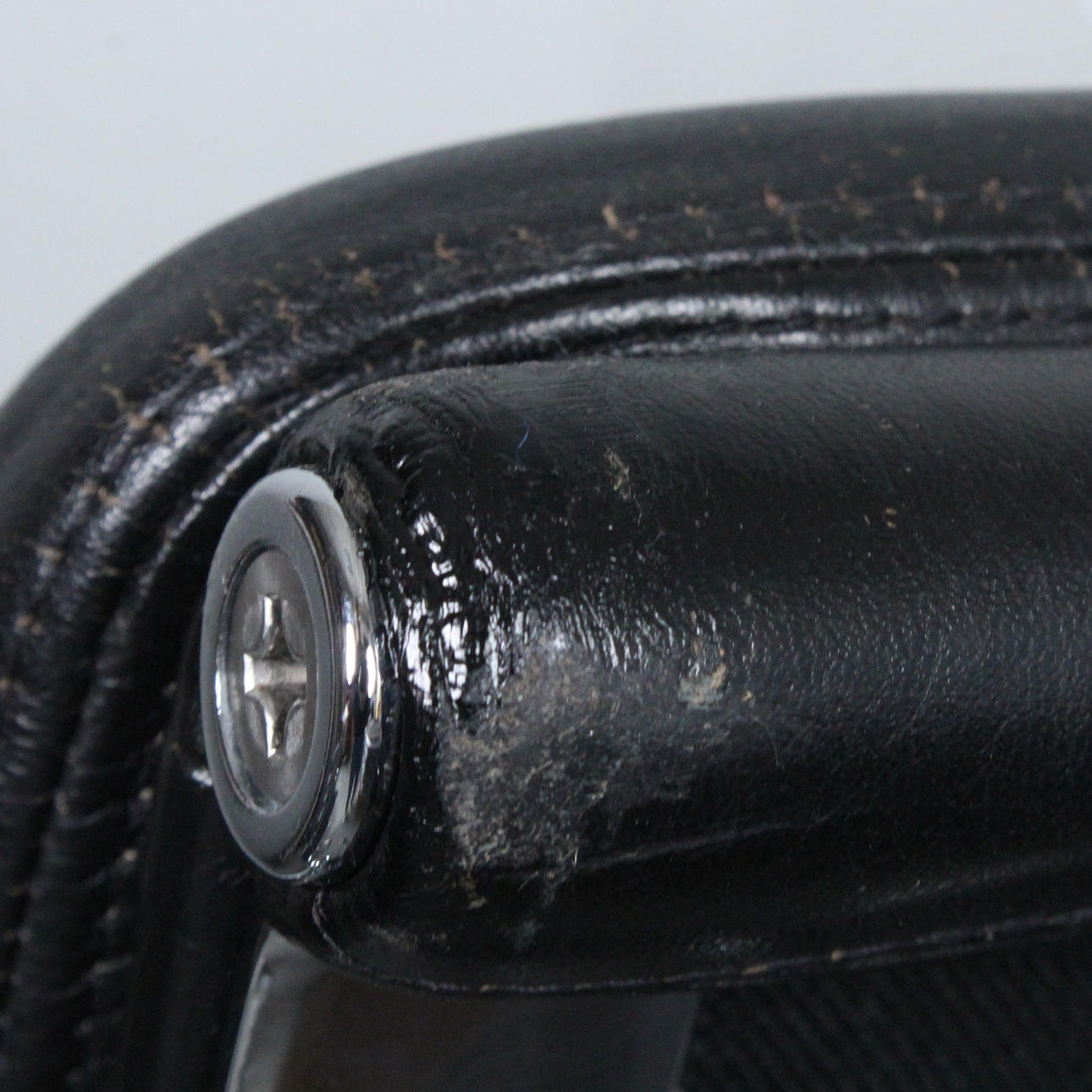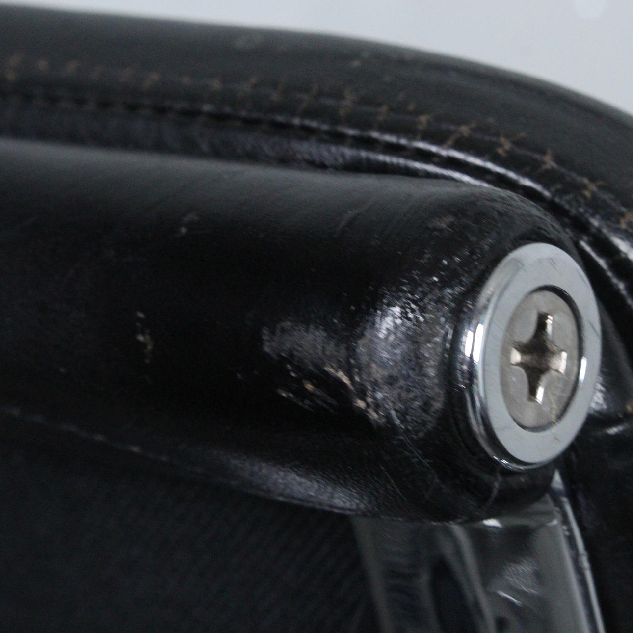 Charles & Ray Eames för Vitra, kontorsstol/kontorsstol, softpad, modell 'EA 217', design: 1969, läder; förkromad pressgjuten aluminiumram, stoppad och täckt med svart läder, höjdjusterbar, roterbar och med inbyggd ryggstödsmekanism,