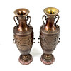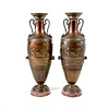 URNOR, ett par, stora bronsurnor monterade med rosa marmorbaser, H. 61cm.