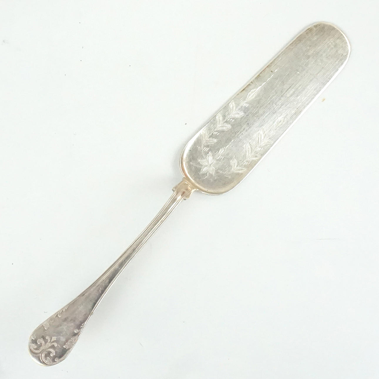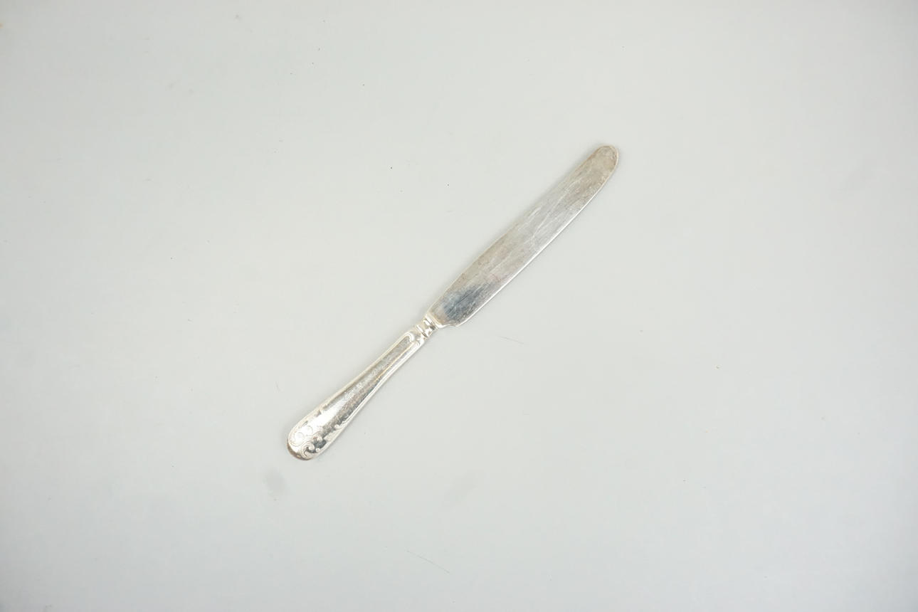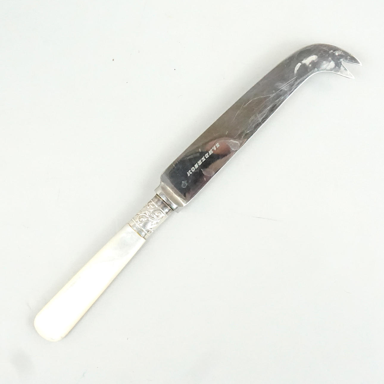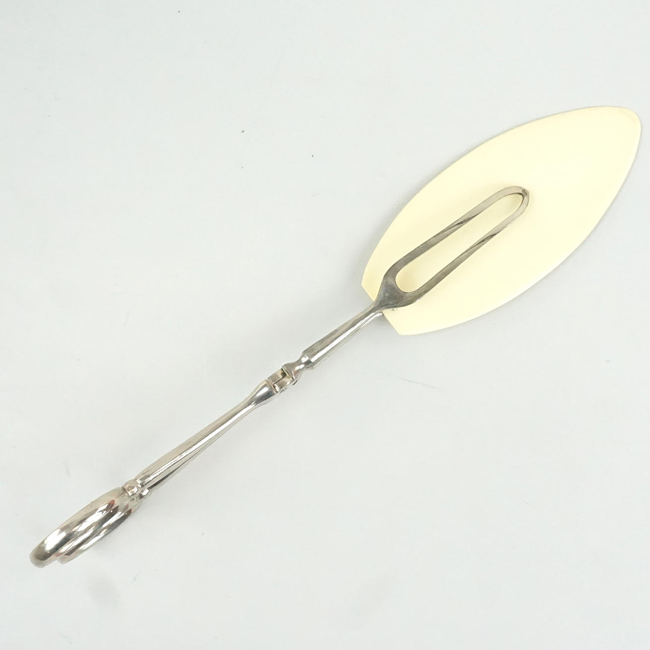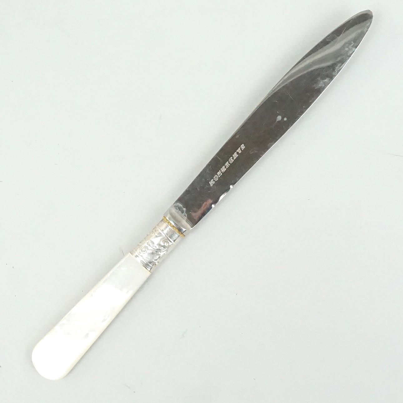 Parti bestick, bl a två knivar med pärlemorskaft, två såsslevar samt en tårtspade.