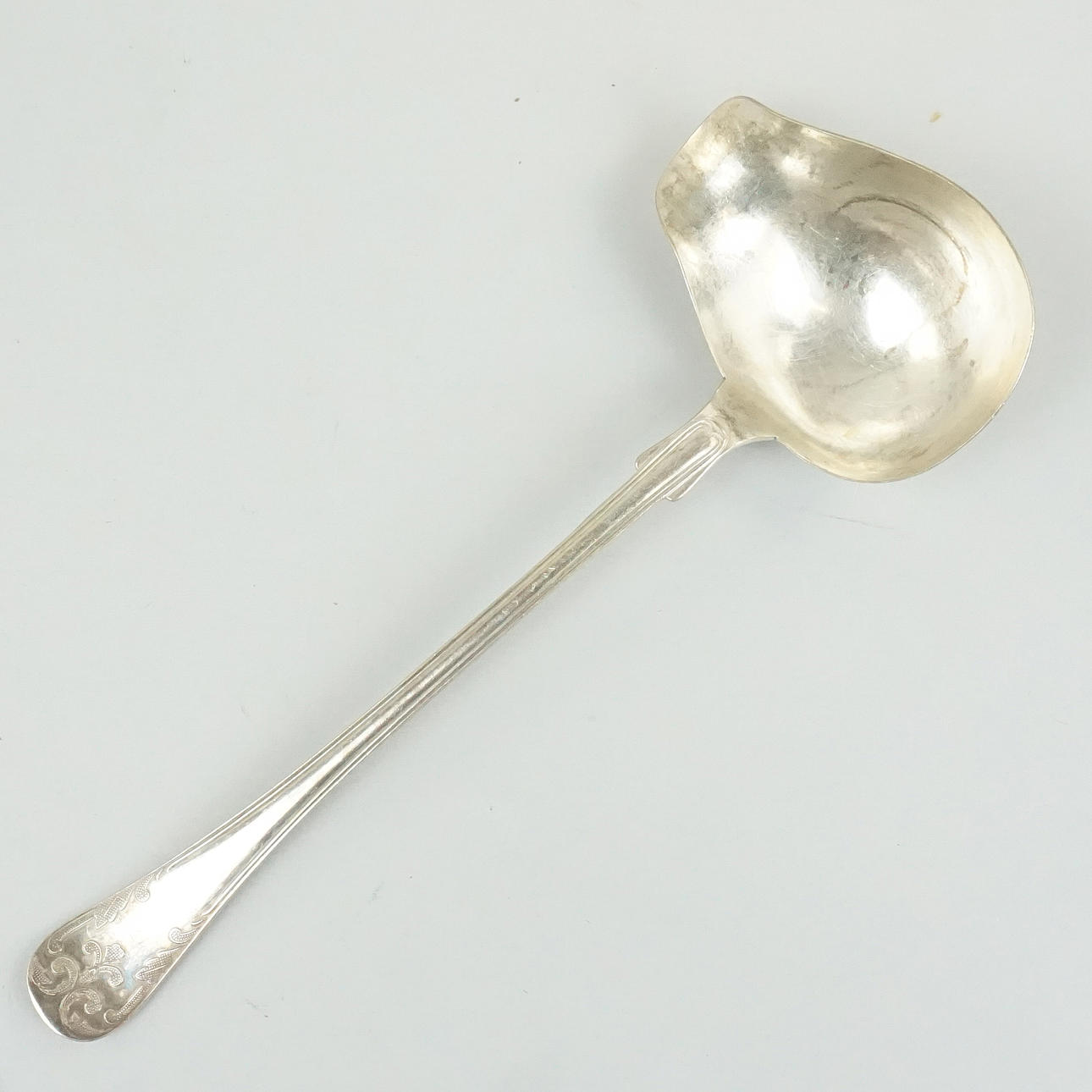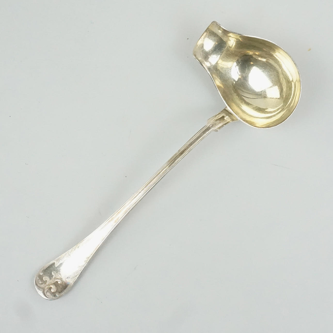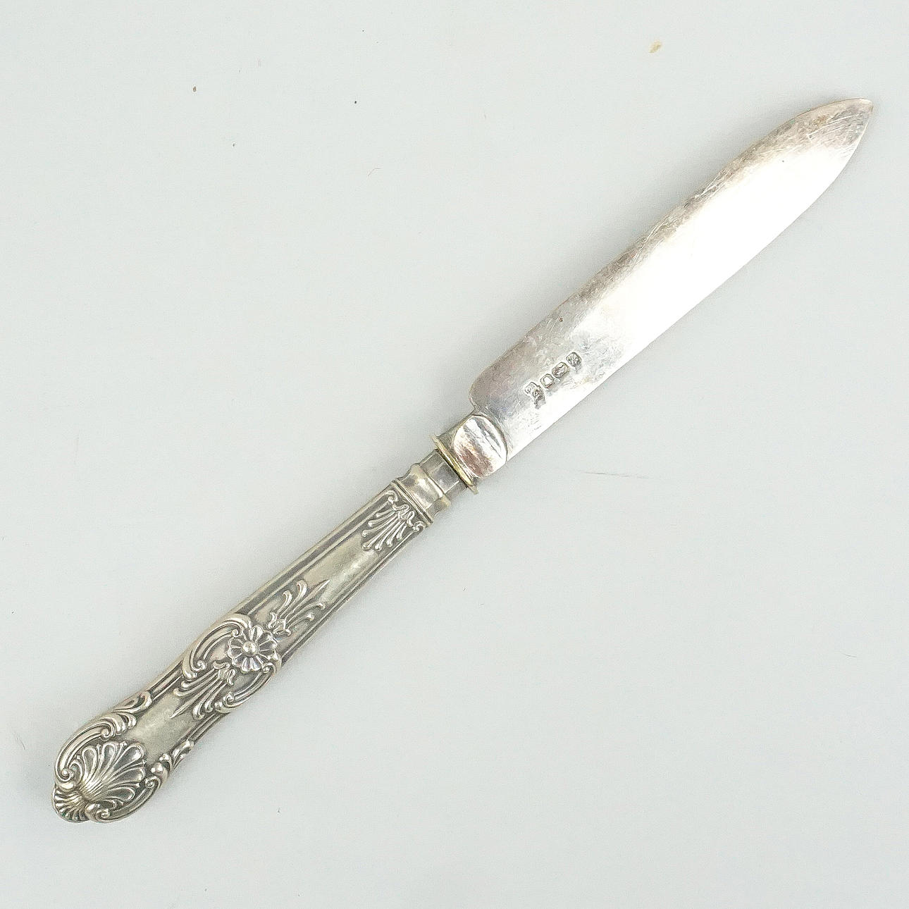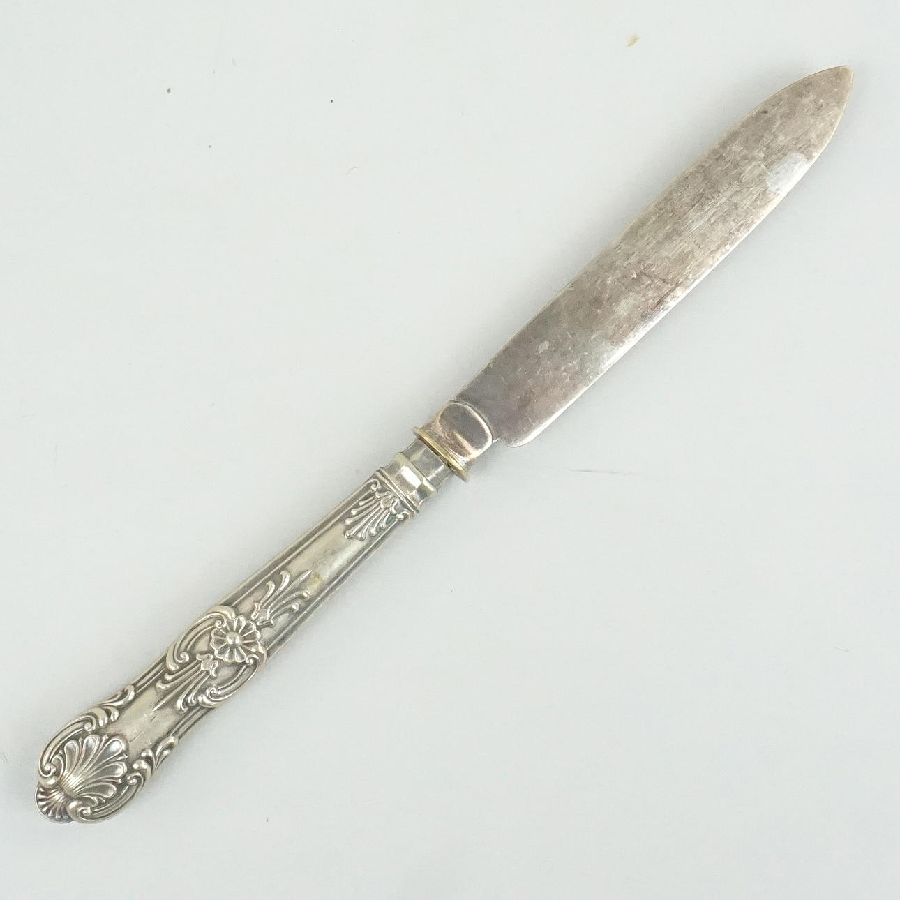 Parti bestick, bl a två knivar med pärlemorskaft, två såsslevar samt en tårtspade.