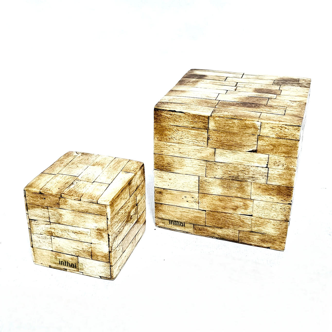 Par dekorativa kuber i benplattor.