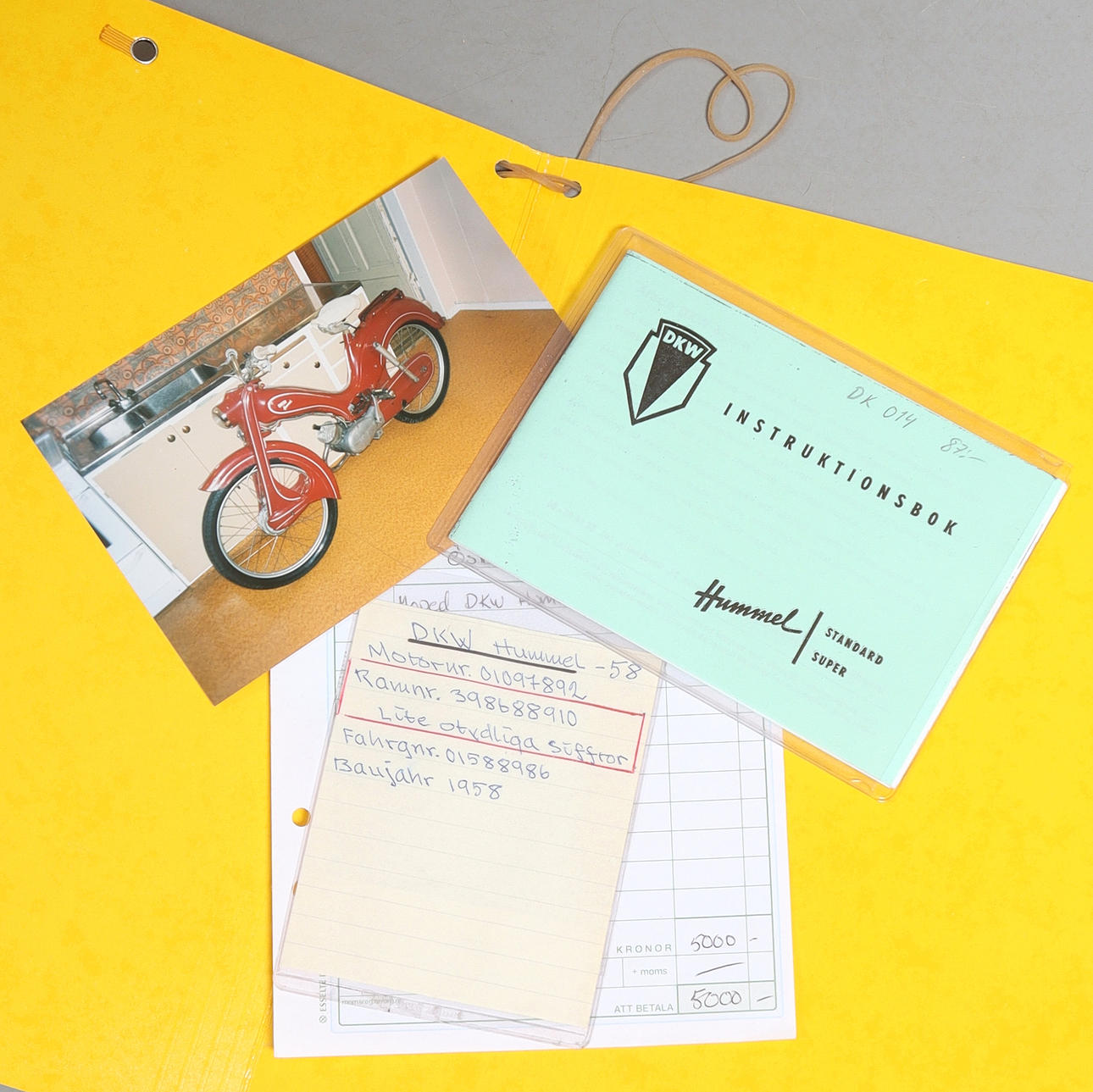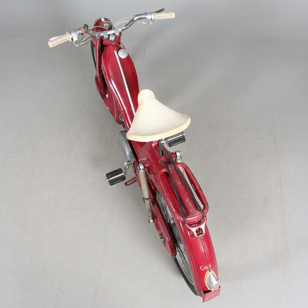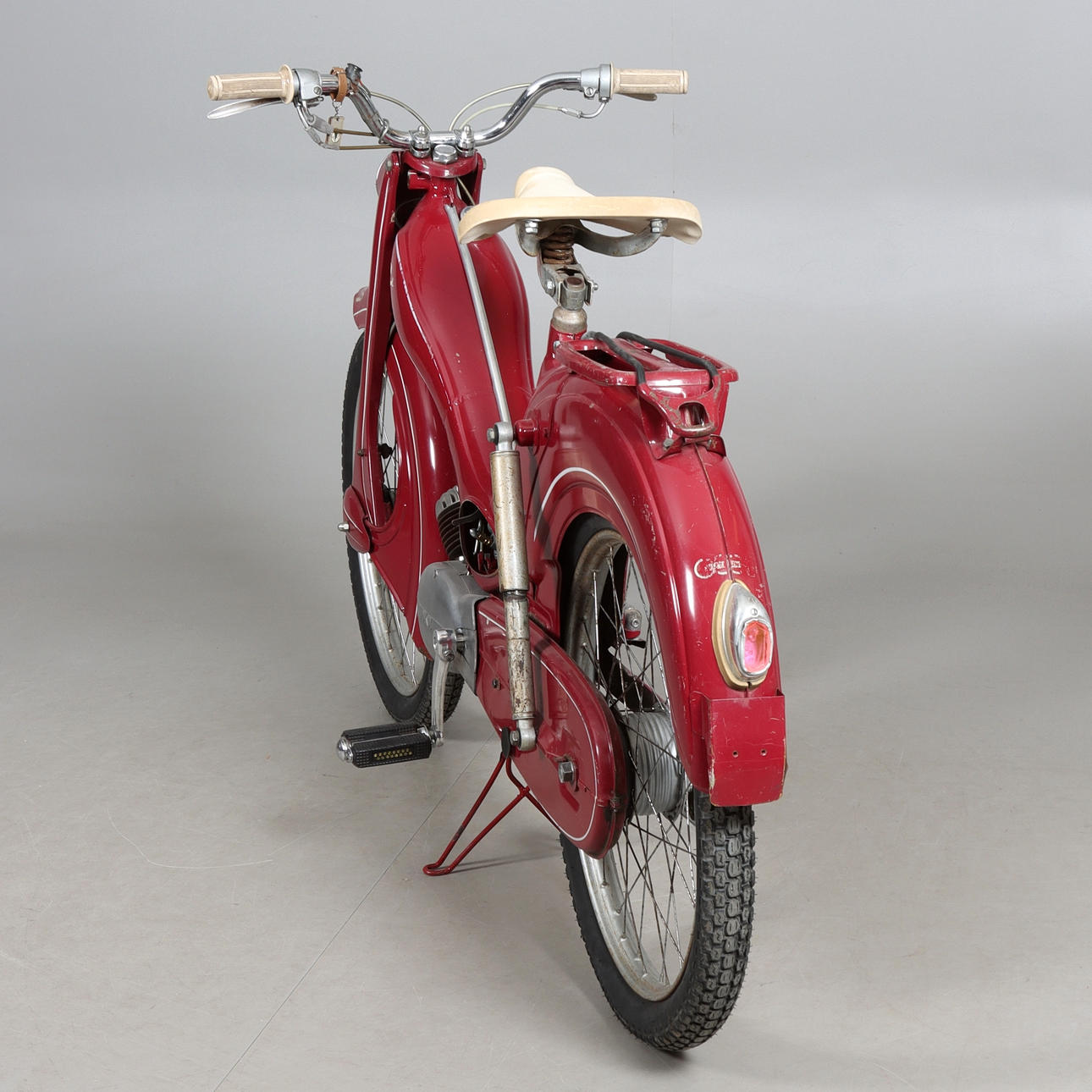 49cc. 0,8 hkr, bränsleförbrukning 0,15 lit/mil, 3 växlar, bingförgasare med halvautomatisk choke och luftfilter. Motornummer 0109789, ramnummer 398688910 (något otydliga siffror), färgnummer 0158898.