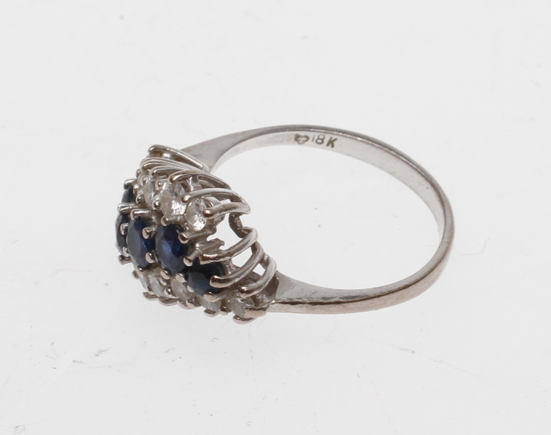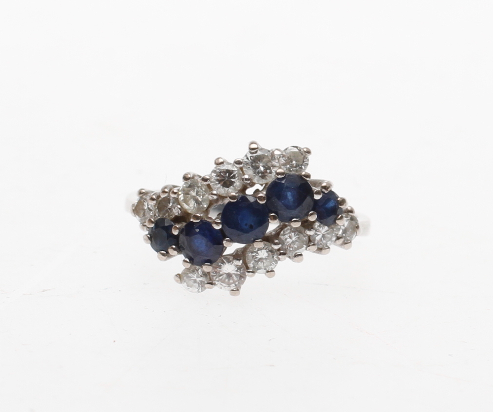 40304. RING, 18k guld med diamanter samt blå stenar.