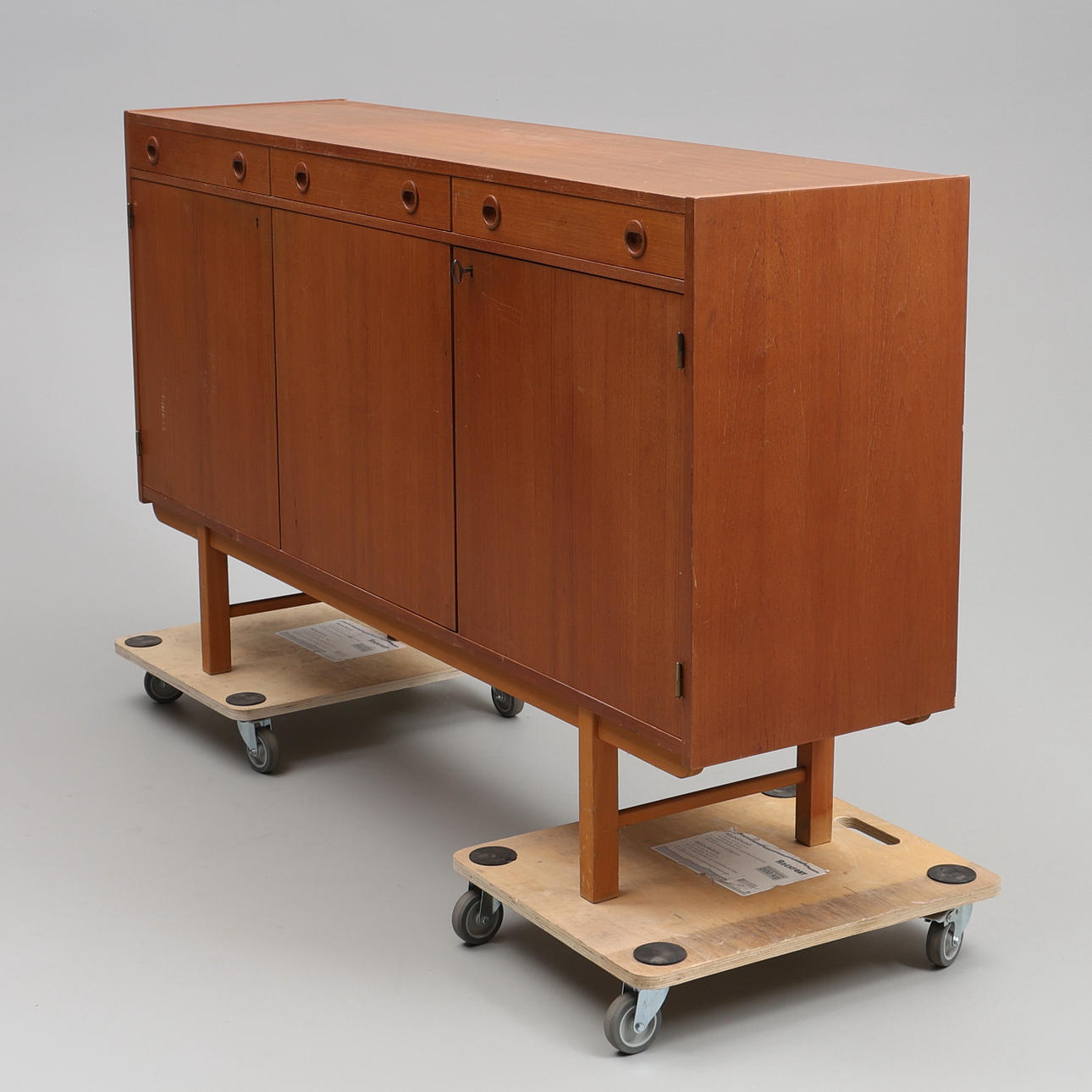 Bruksslitage, repor, märken samt att den vänstra lådan är något svårstängd.