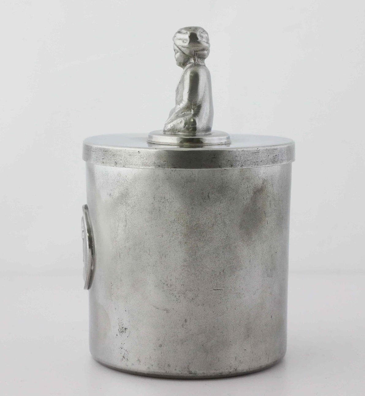 Swedish Grace. Knopp i form av orientalisk man, burk med reliefdekor i form av man från antiken. Höjd 11 cm.