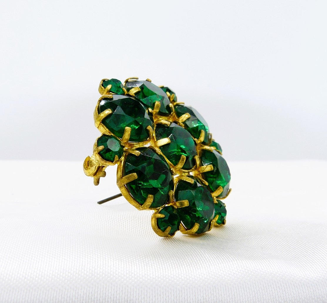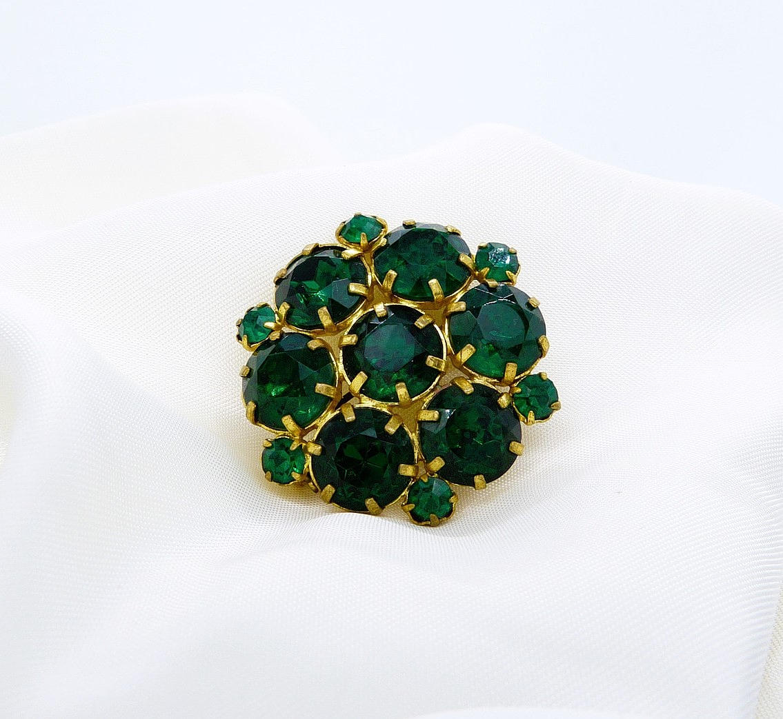 Brosch 2 - Gröna ädelstenar i guldfärgad metallring