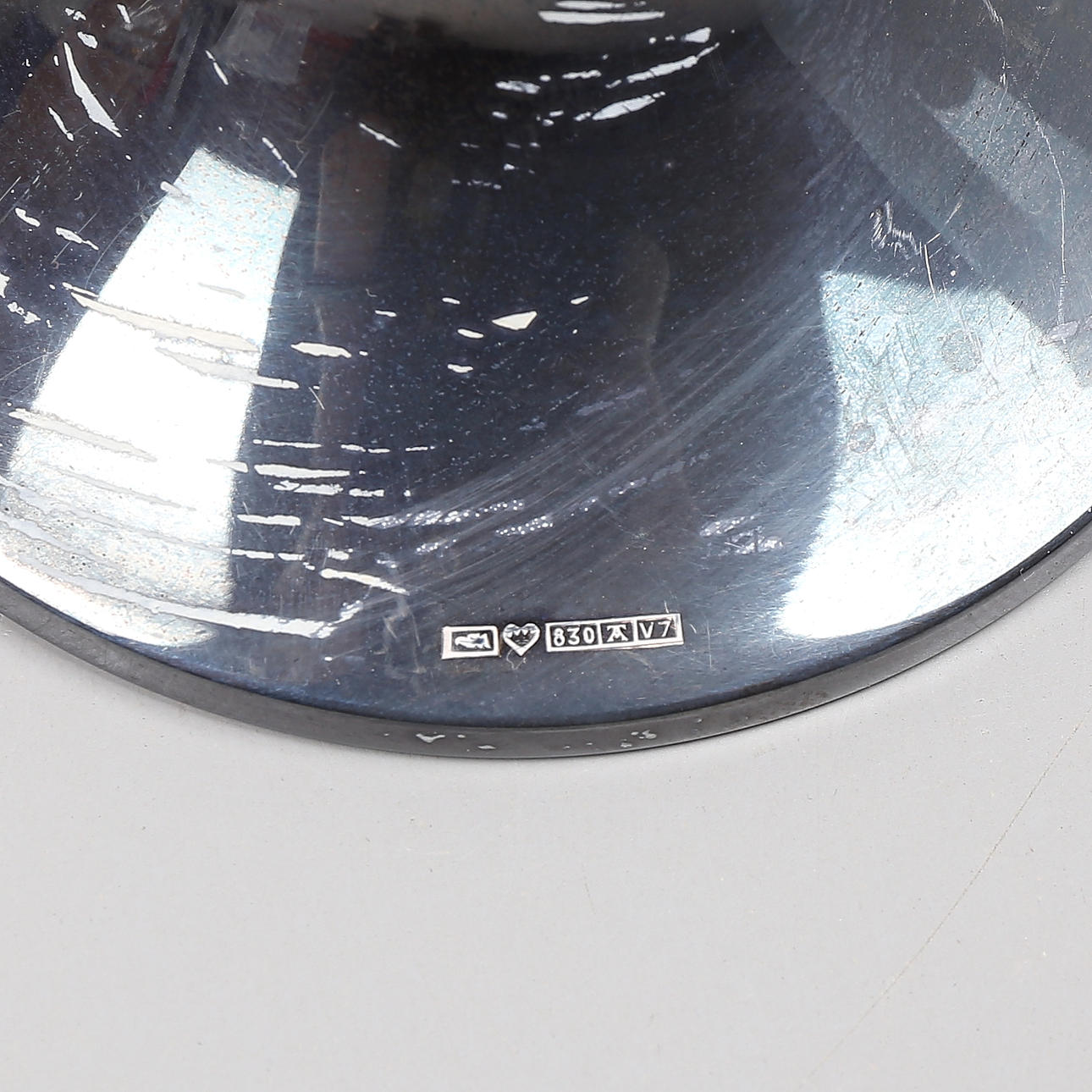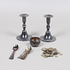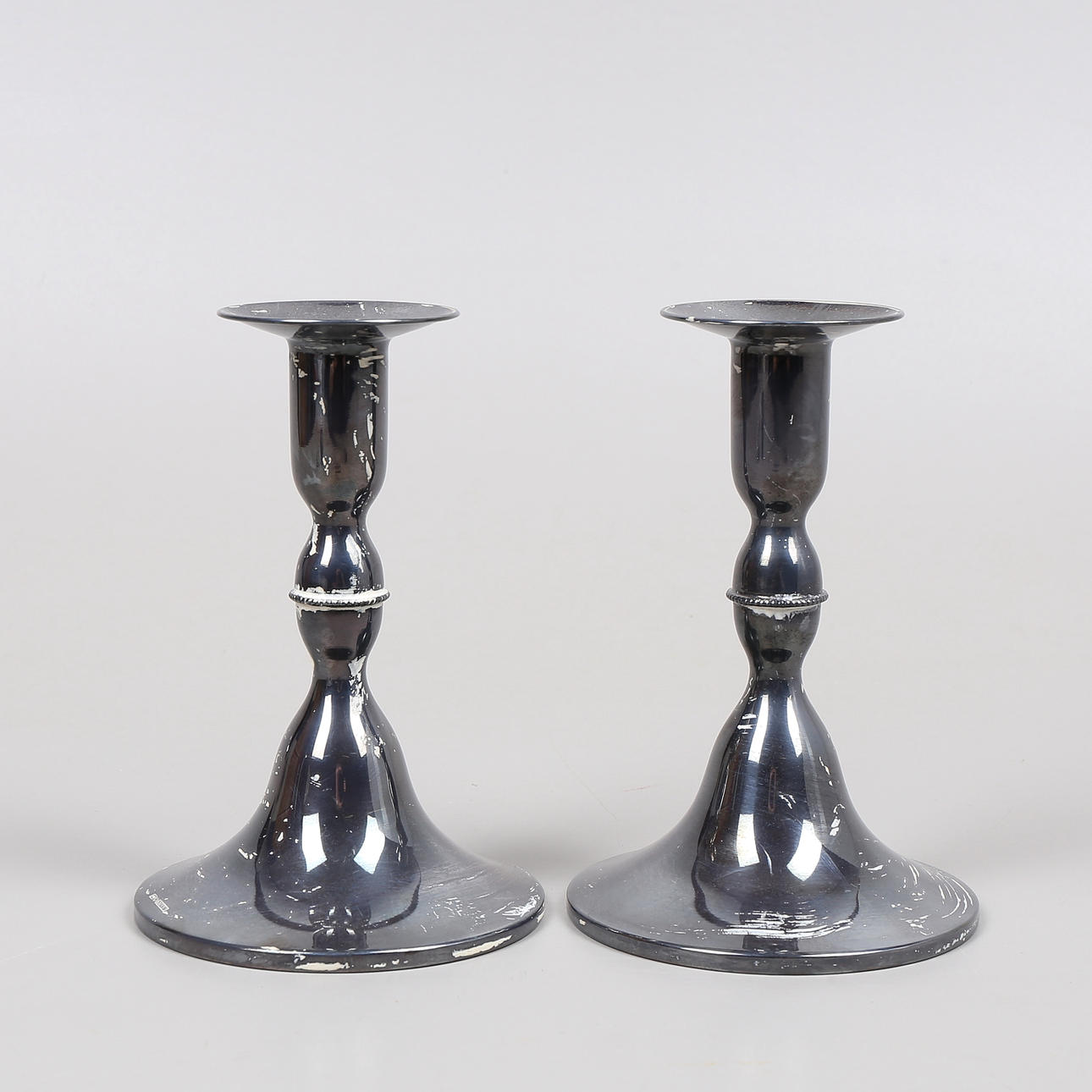 Ljusstakar, metallplatta i botten, höjd 13,5 cm, vikt 221 gram.