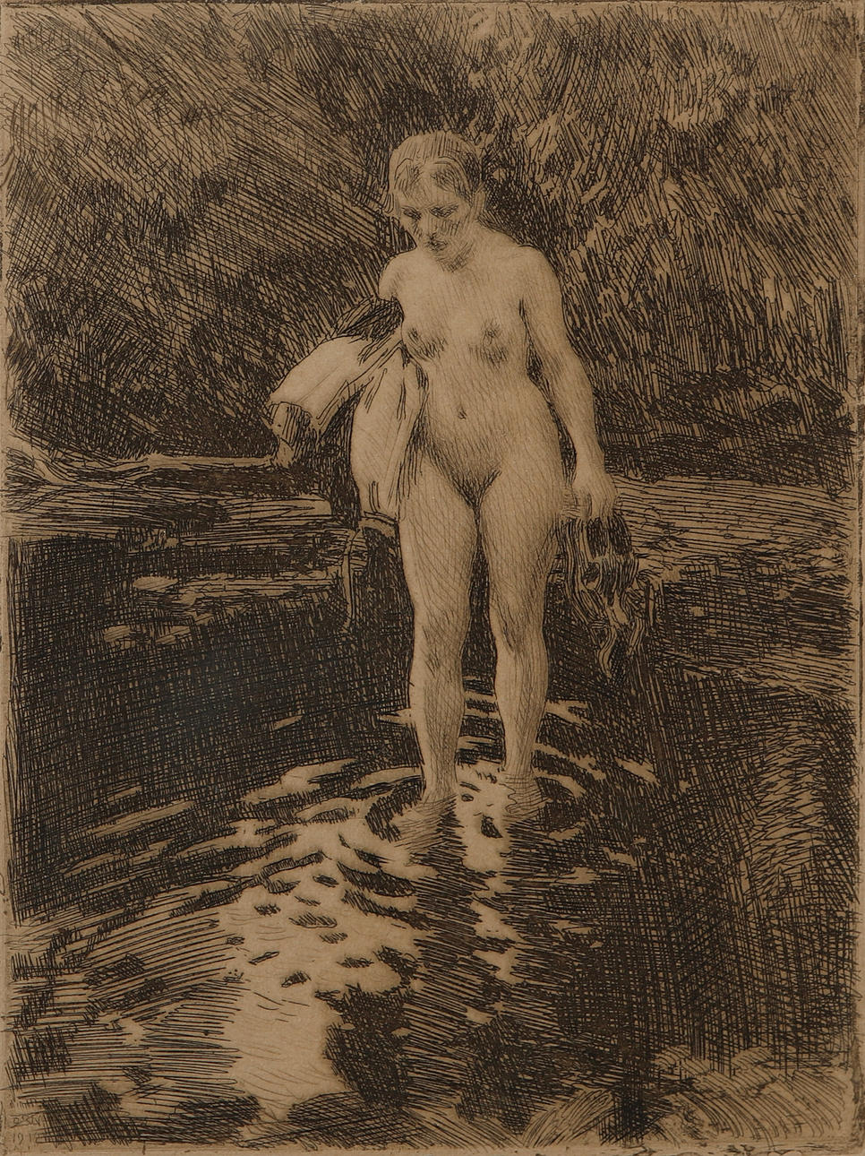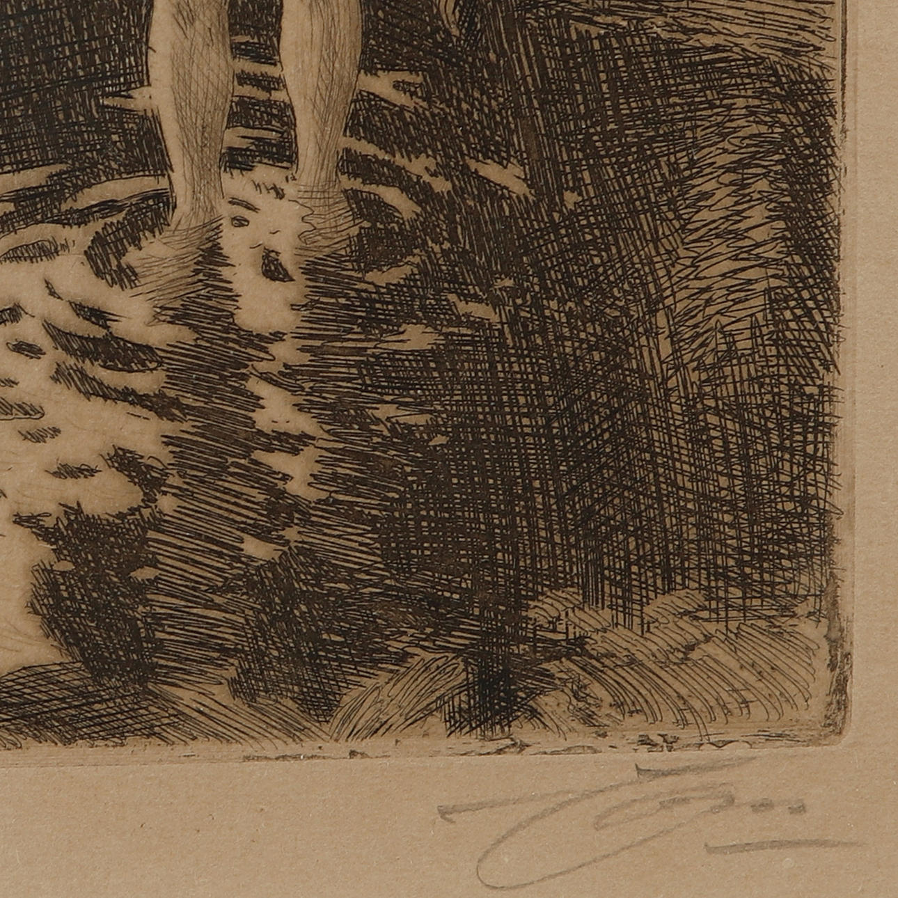 ANDERS ZORN. "Vadstället", etsning, signerad.