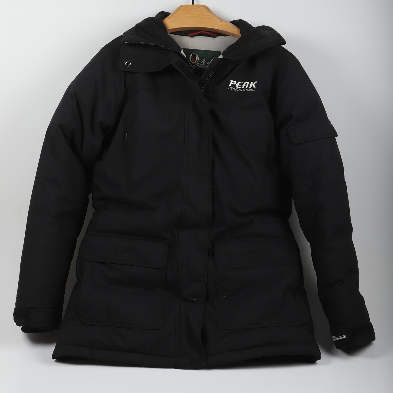 Modell S W D Parka 4 fickor, 1 innerficka, dragsko i midjan Rygglängd 80, ärm innerlängd ca 57 cm, storlek Medium.