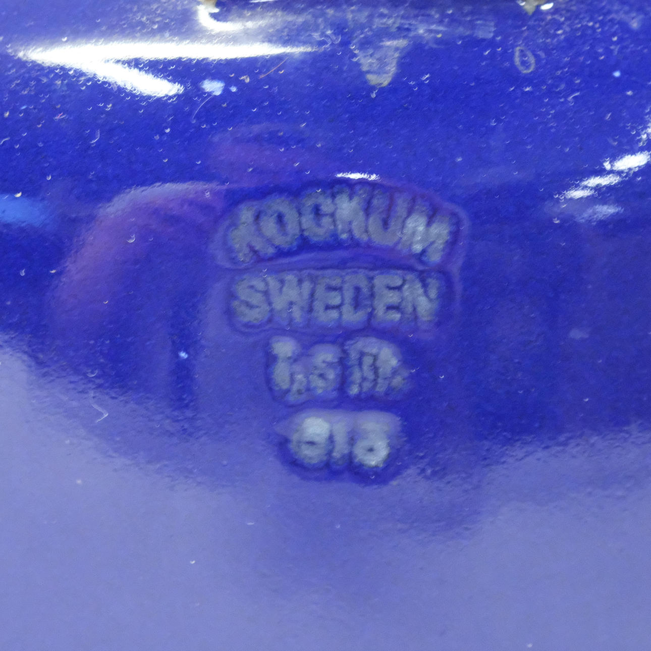Kanna, Kockums, blå emalj, höjd 17 cm.