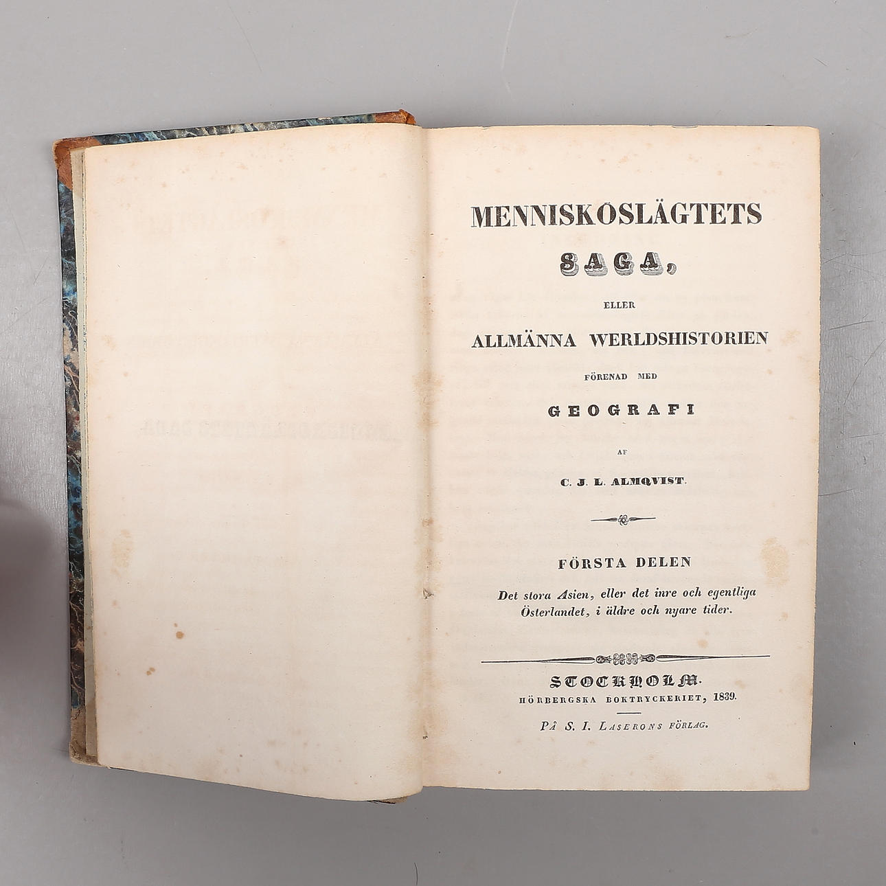 MÄNNISKOSLÄGTETS SAGA, bok, 1839.