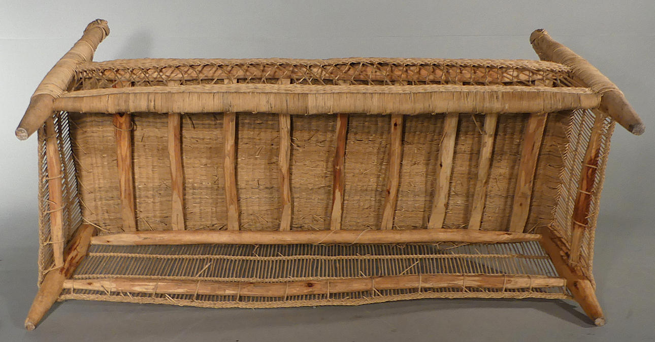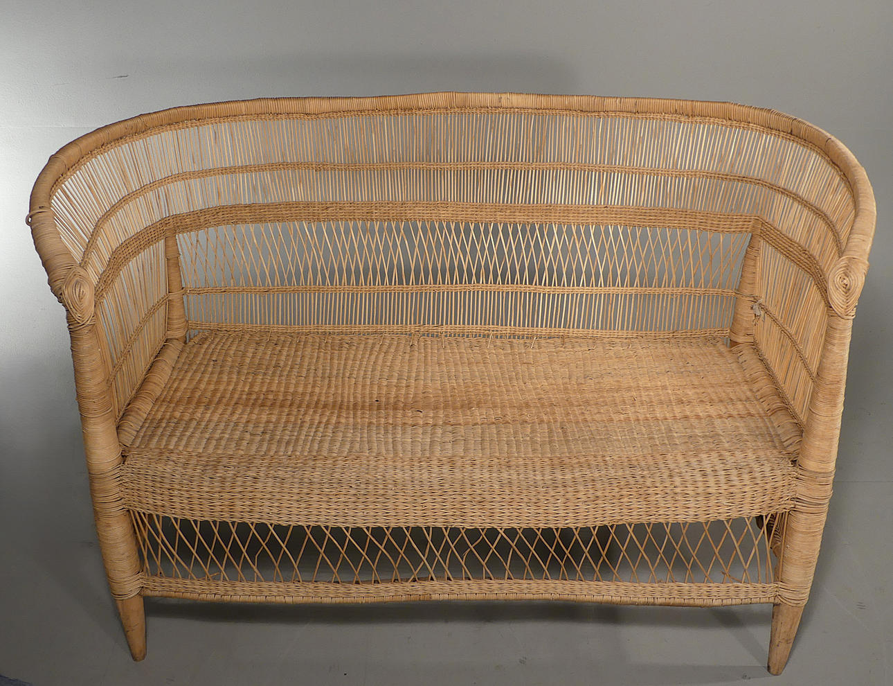 Soffa i rotting. Längd 125 cm, rygghöjd 80 cm, sitthöjd 37 cm, djup ca 65 cm. Visningsexemplar från affär. Dyna medföljer men ej original till soffa.