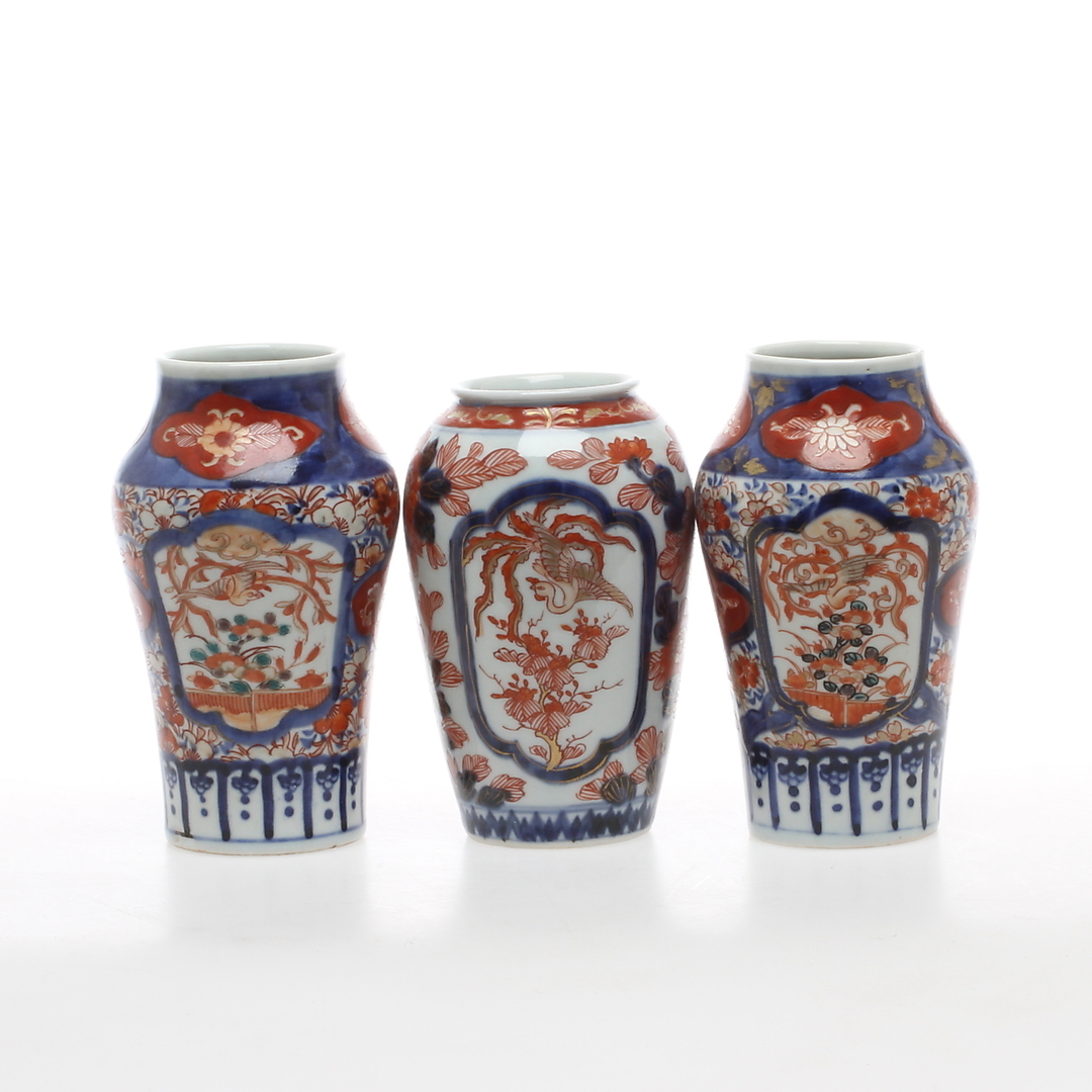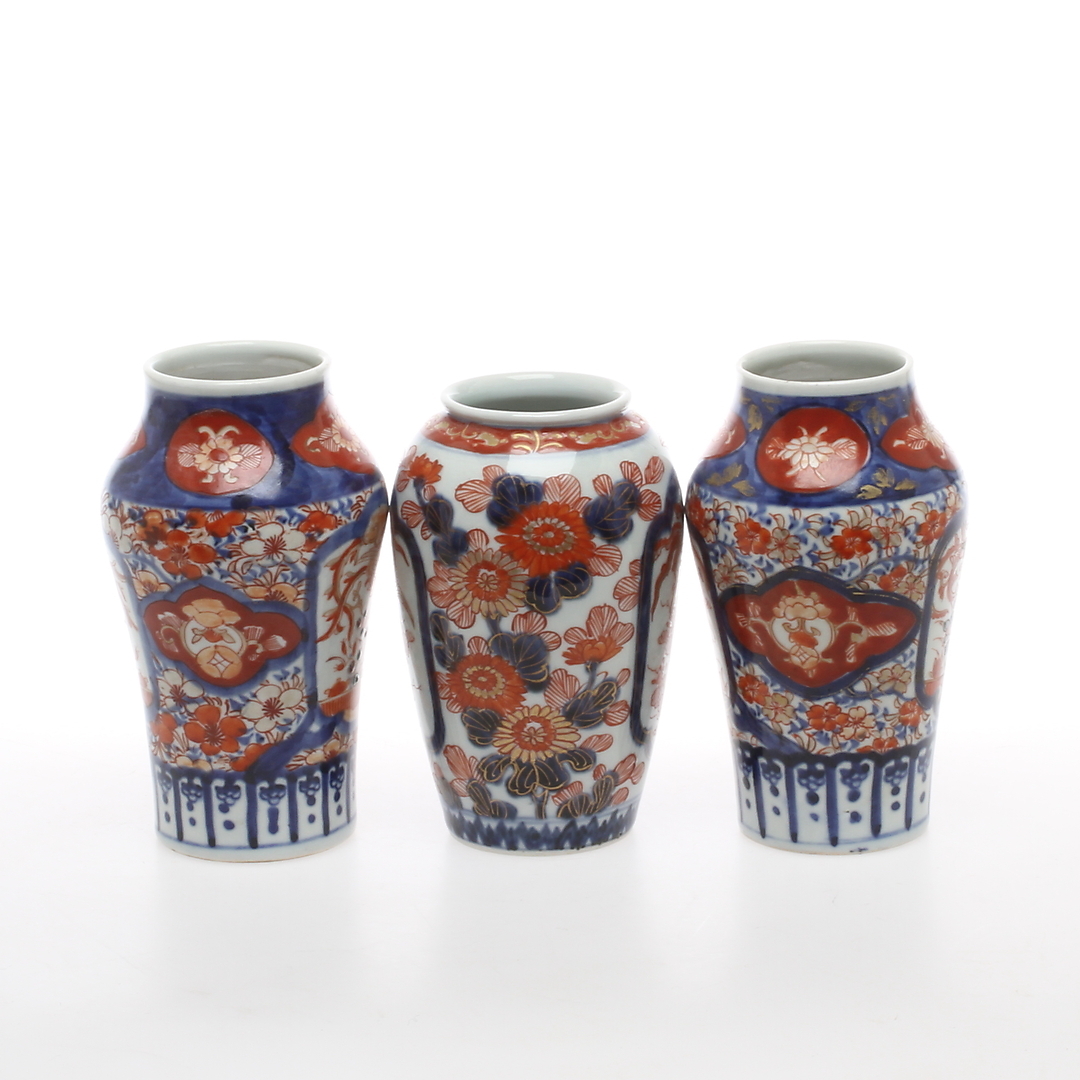 405269. VASER, 3 st, porslin, Imari, Japan.