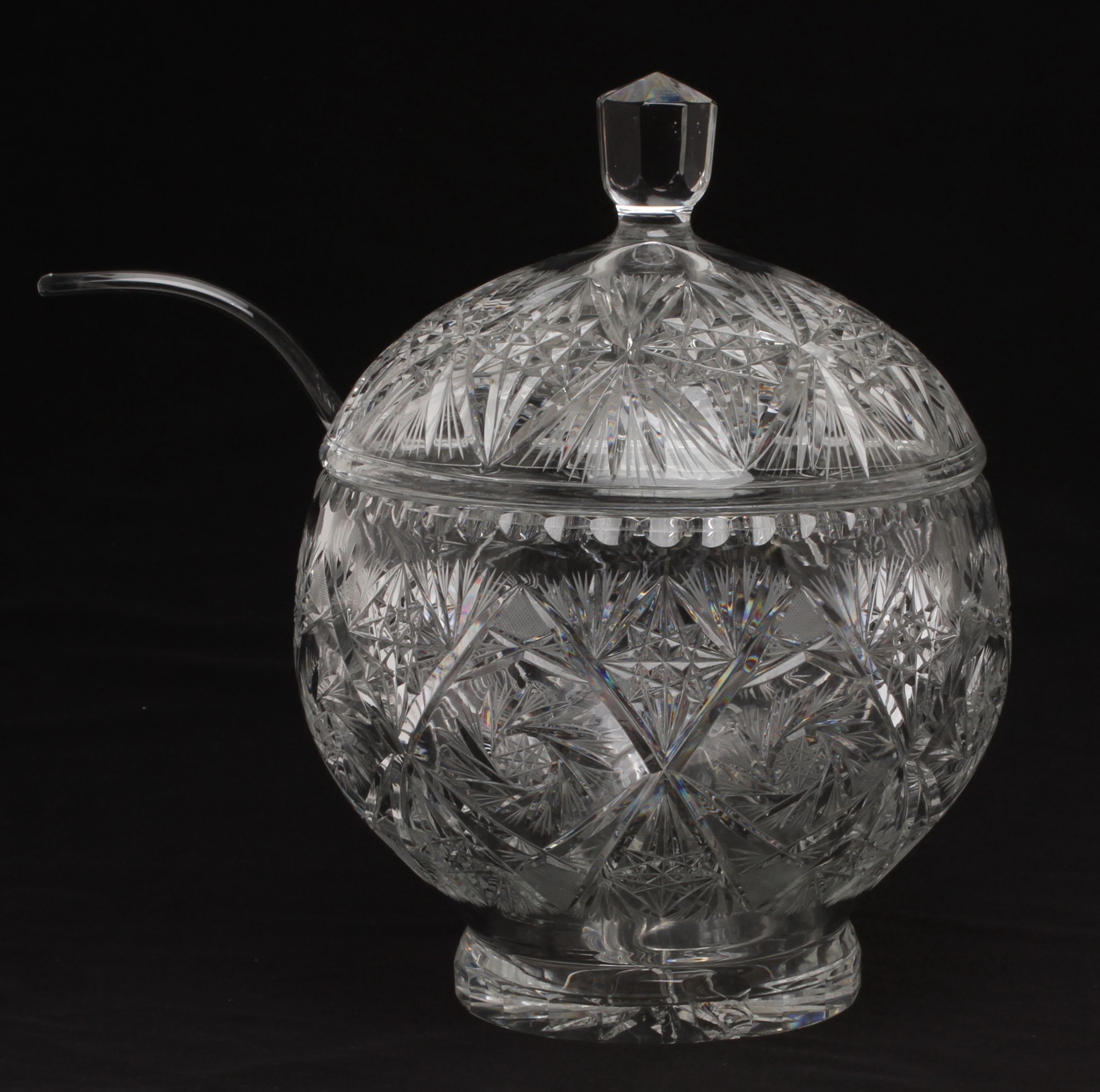 40527. BÅLSKÅL med slev, glas, Böhmisk.1900-tal.