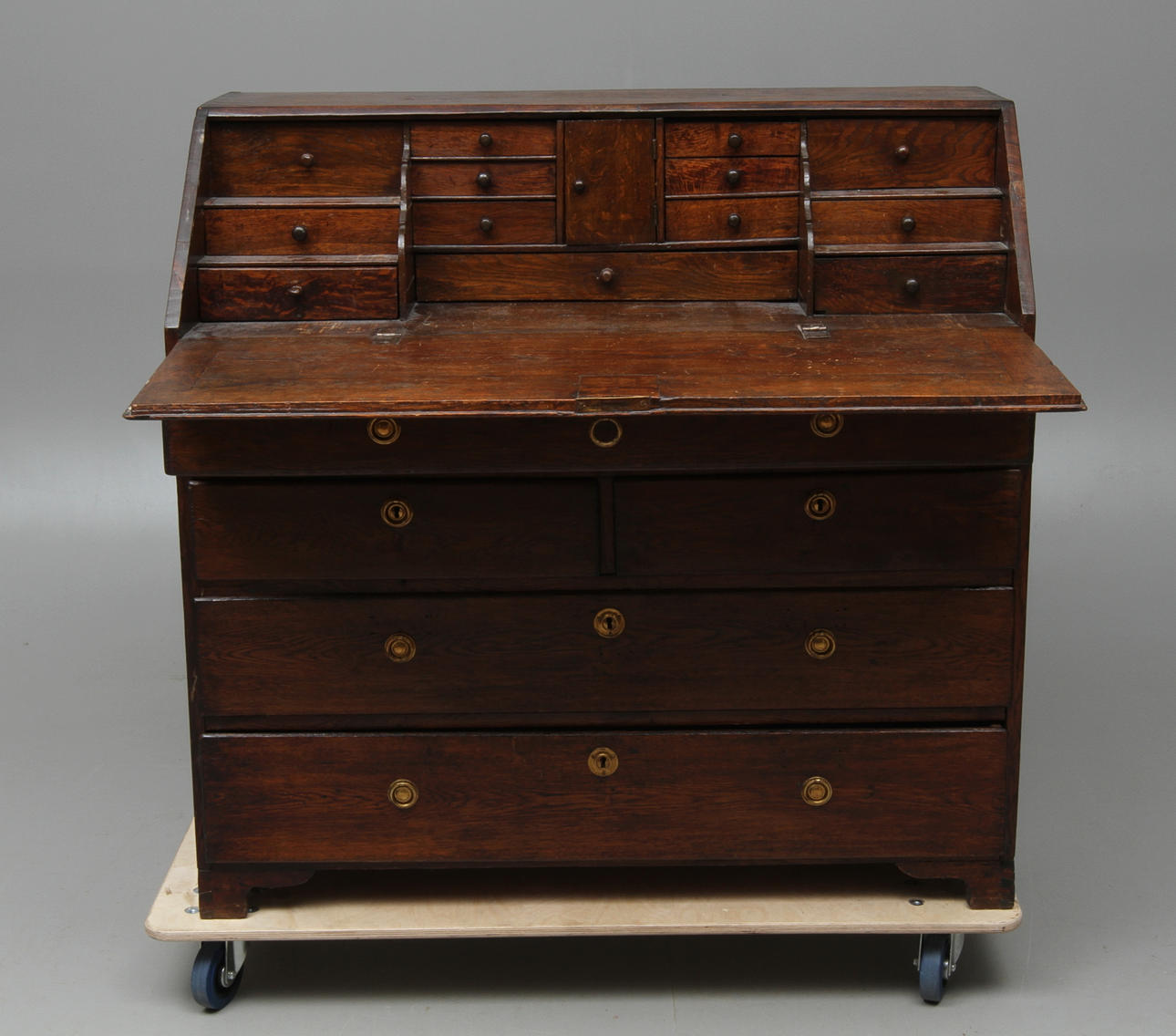 Nyckel saknas, slitage, lagningar, sprickor, kompletterad.