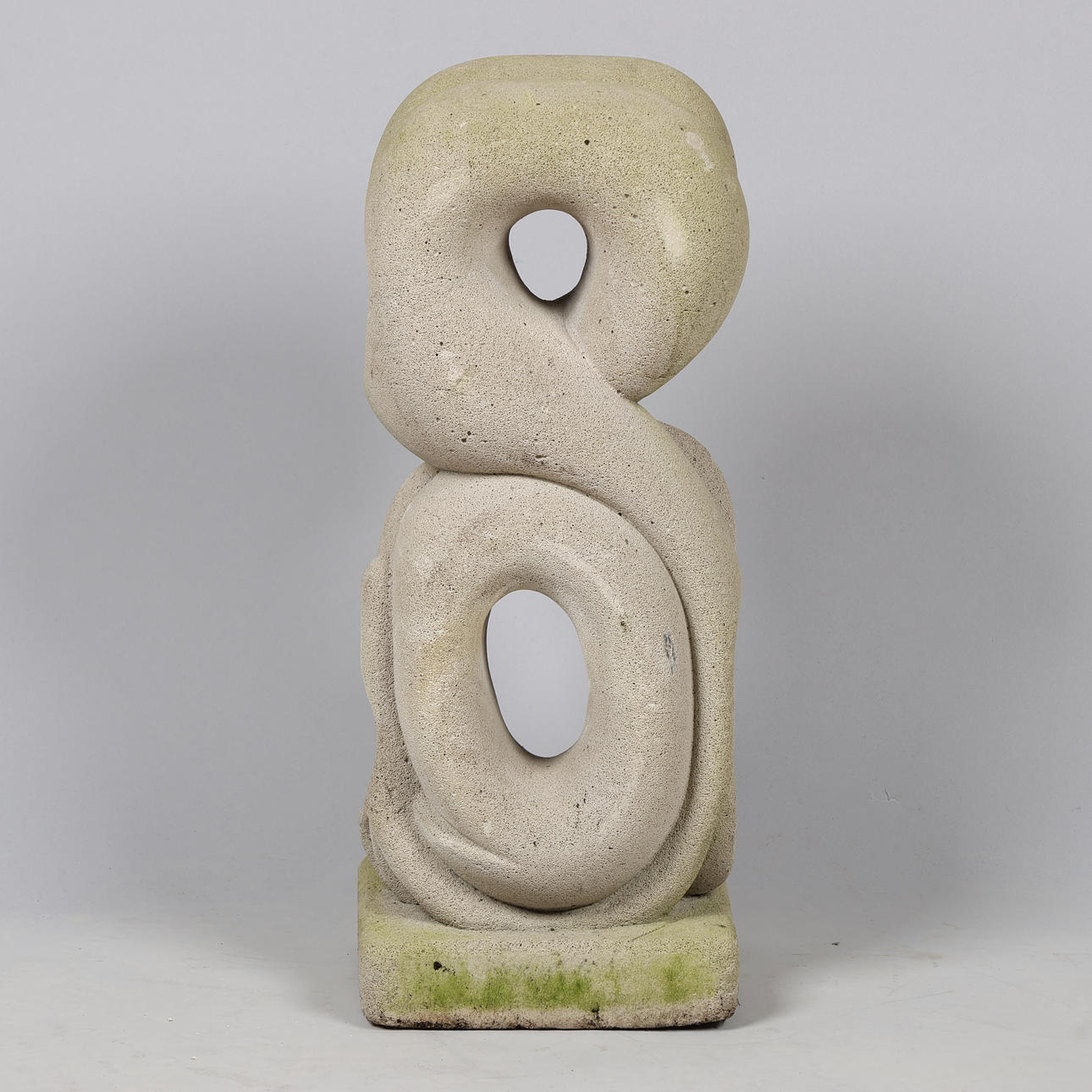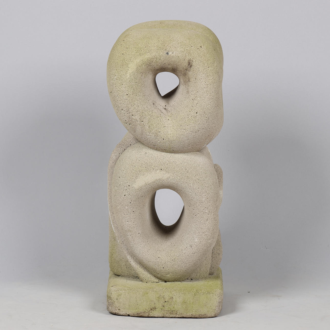 Bär märken av att ha stått utanför, inklusive jord och grönaktigt lager av mossa.