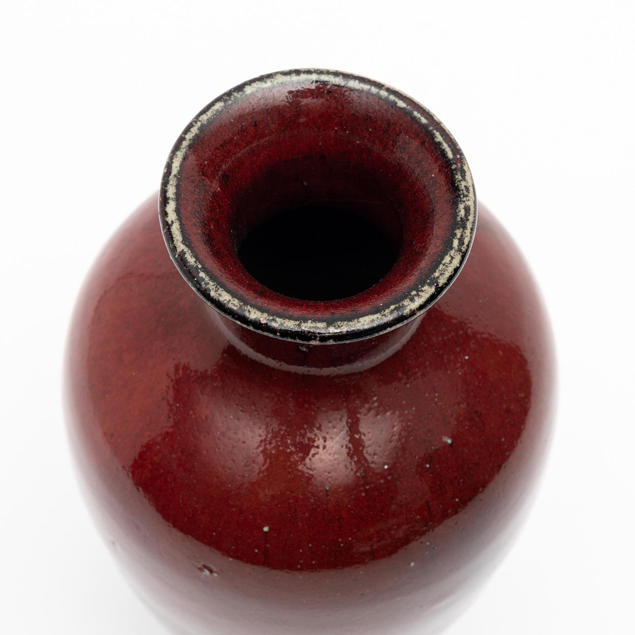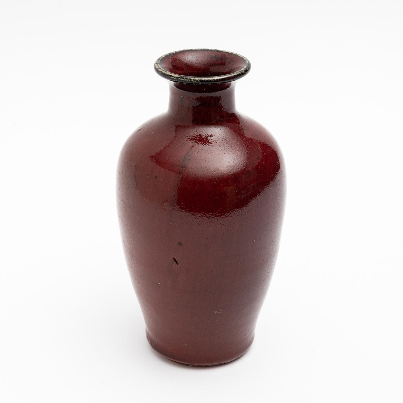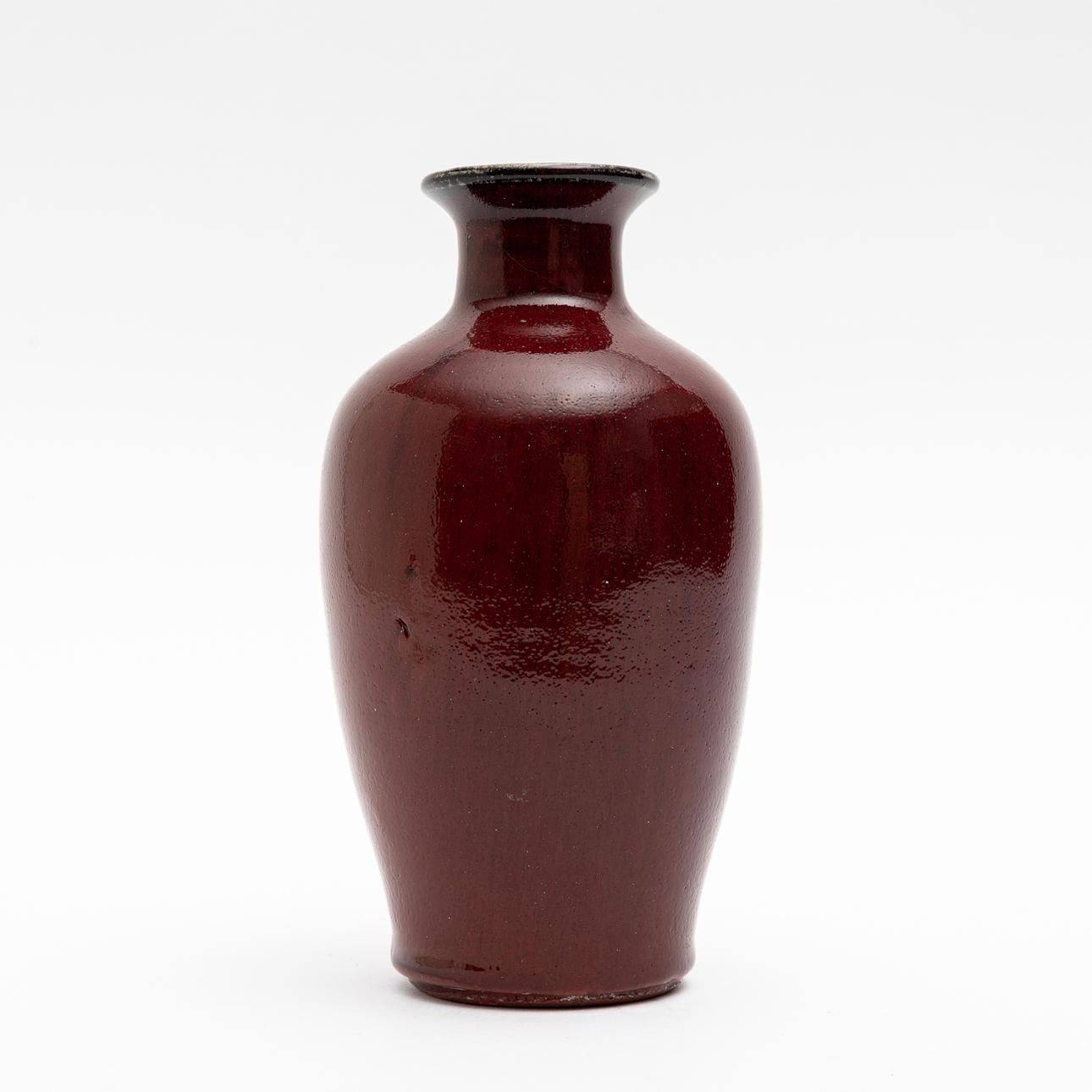 Balusterformad med glasyr i oxblodsfärg. Höjd 19 cm.