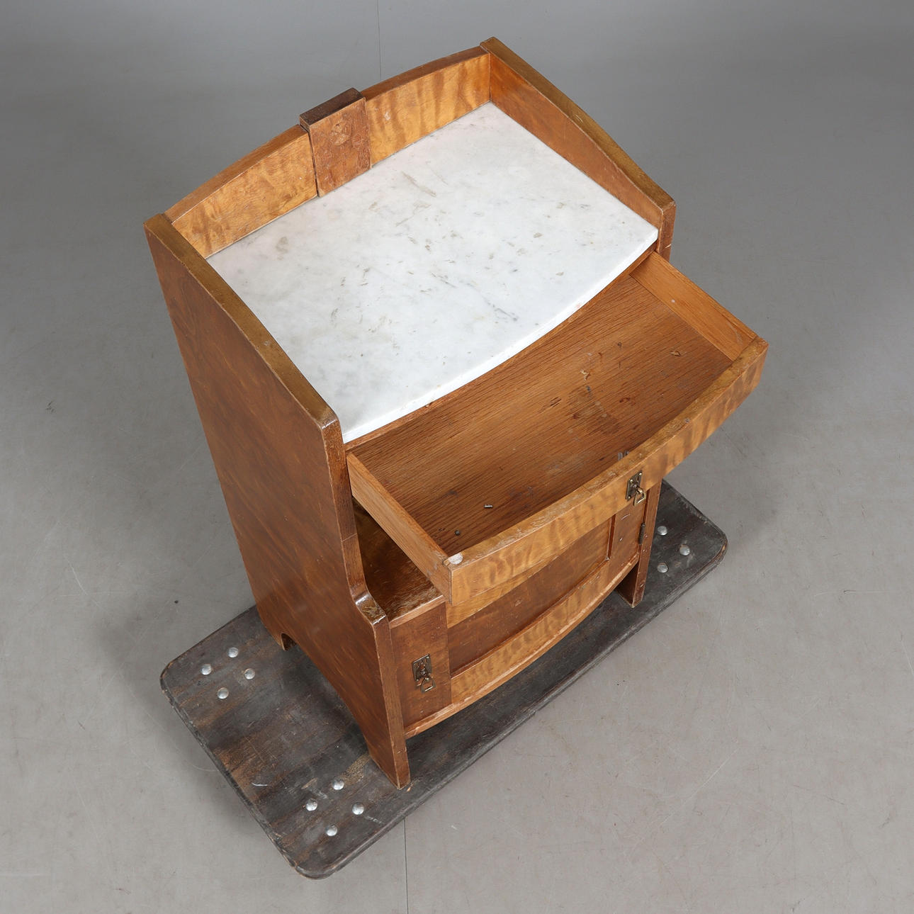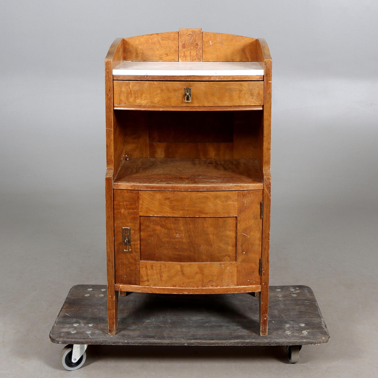 Med en skåplucka samt en draglåda med stenskiva. Längd 46, bredd 34, höjd 85 cm.