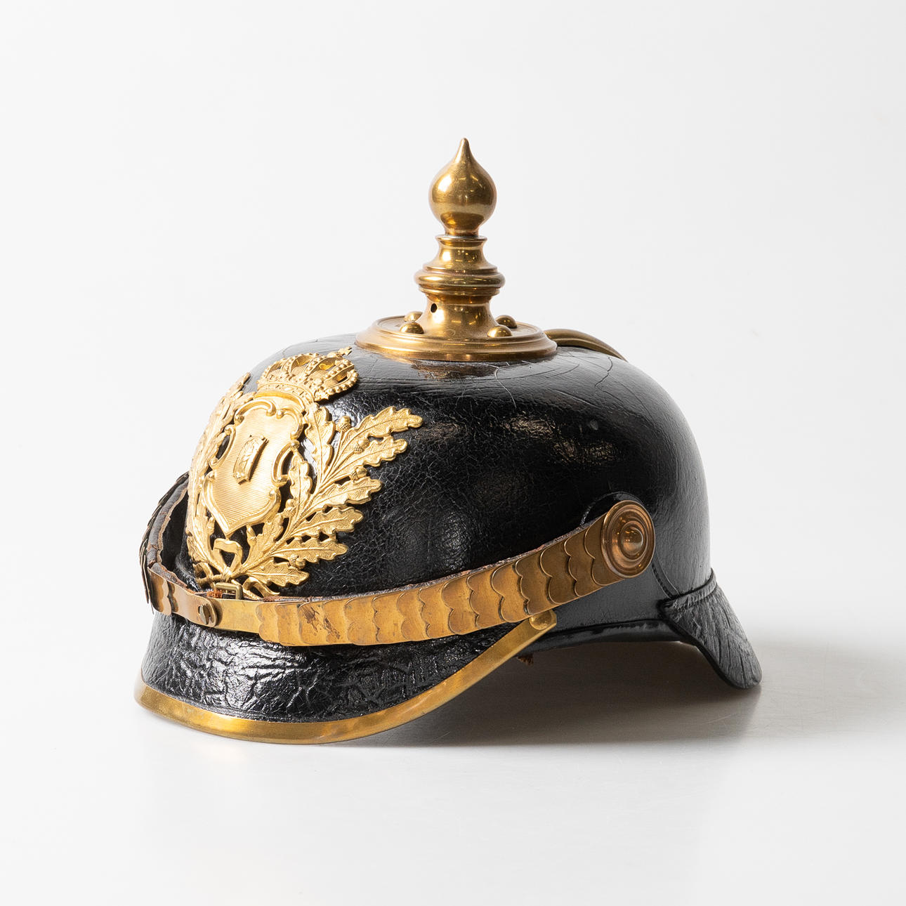 POLISKASK, 1890-års modell, Skövde stadsvapen.