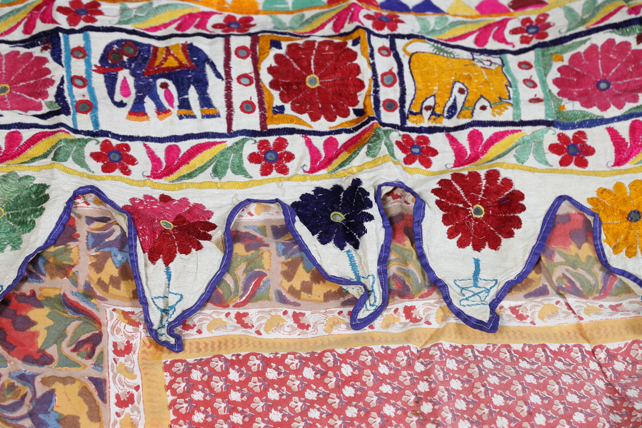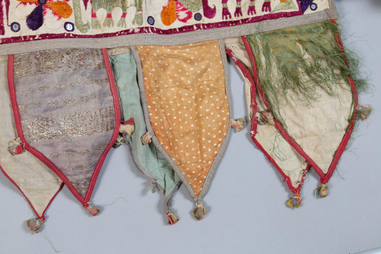 Vissa förluster till de broderade vägghängningarna, dukarna med blekning/fläckar.