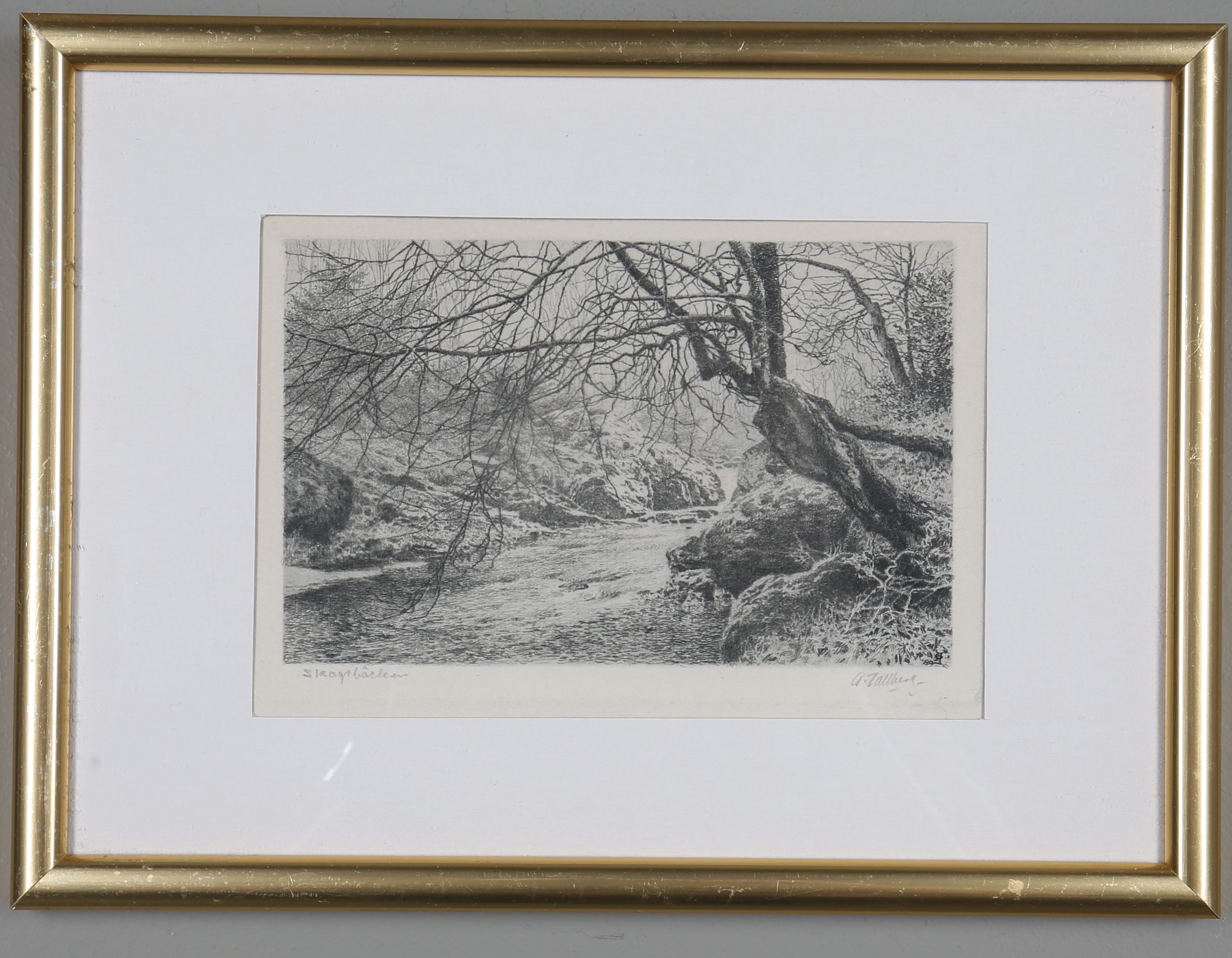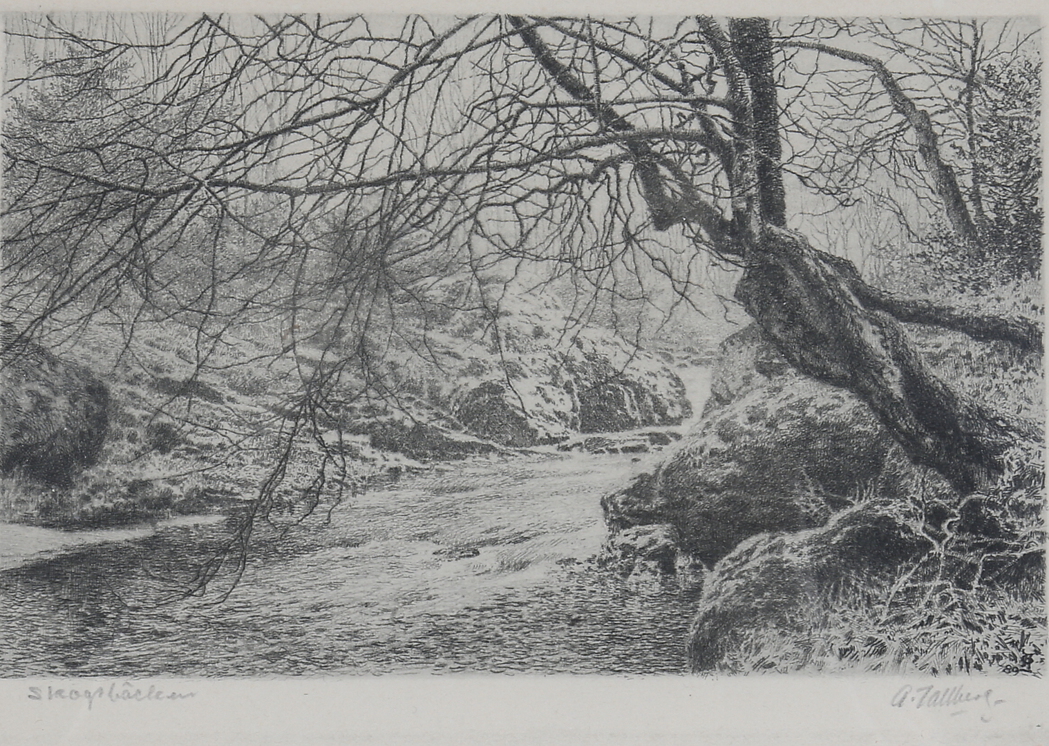 406455. AXEL TALLBERG. "Skogsbäcken", etsning, signerad.