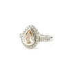 En ring i sterlingsilver med stor päronskuren ljusorange sten omgiven av små vita stenar. UK ringstorlek: U.