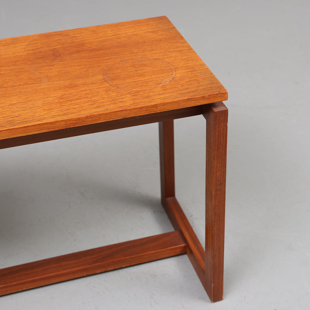 Bänk i teak, omärkt. Mått: längd 100, bredd 30, höjd 41 cm.