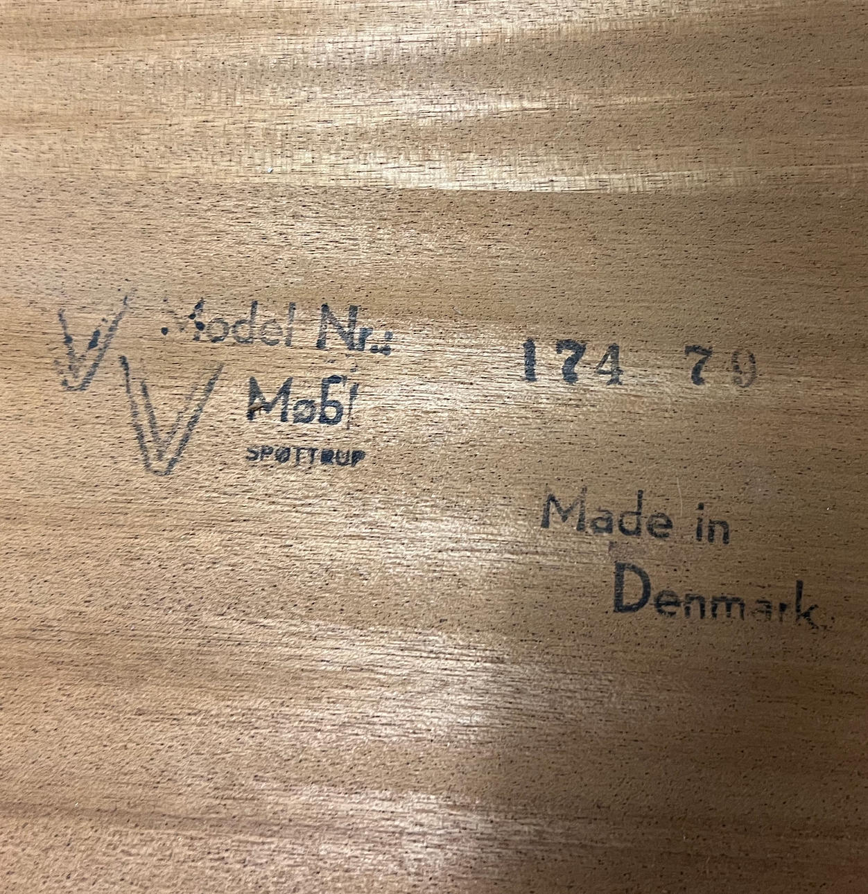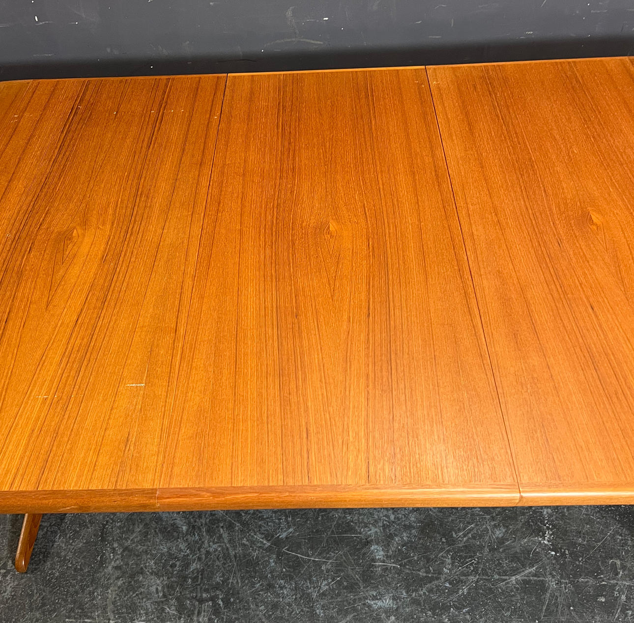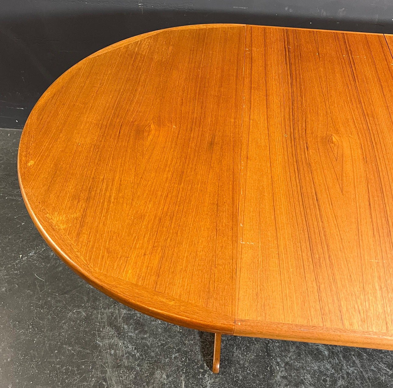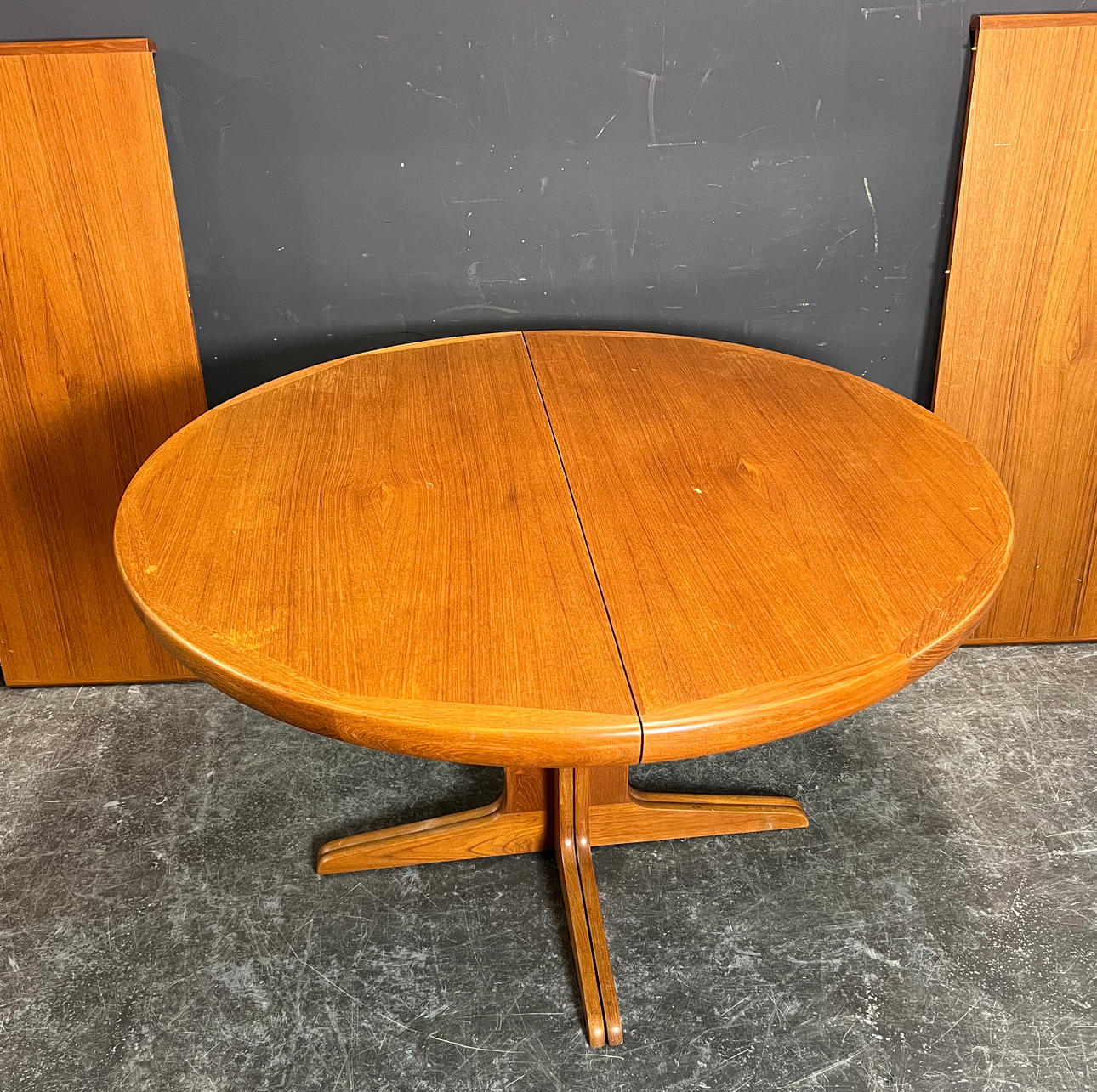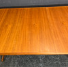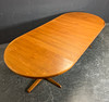 Teakträ med tre insatser. Tillverkad av VV Møbler, Spøttrup. Höjd ca. 72,5 cm, diameter ca. 119 cm, bredd upp till ca. 269 cm.