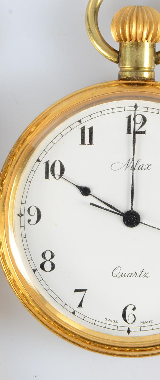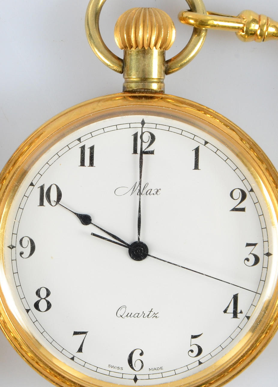 Quartz. Doublé. 48,5 mm. Fickurskedja, längd 24 cm.