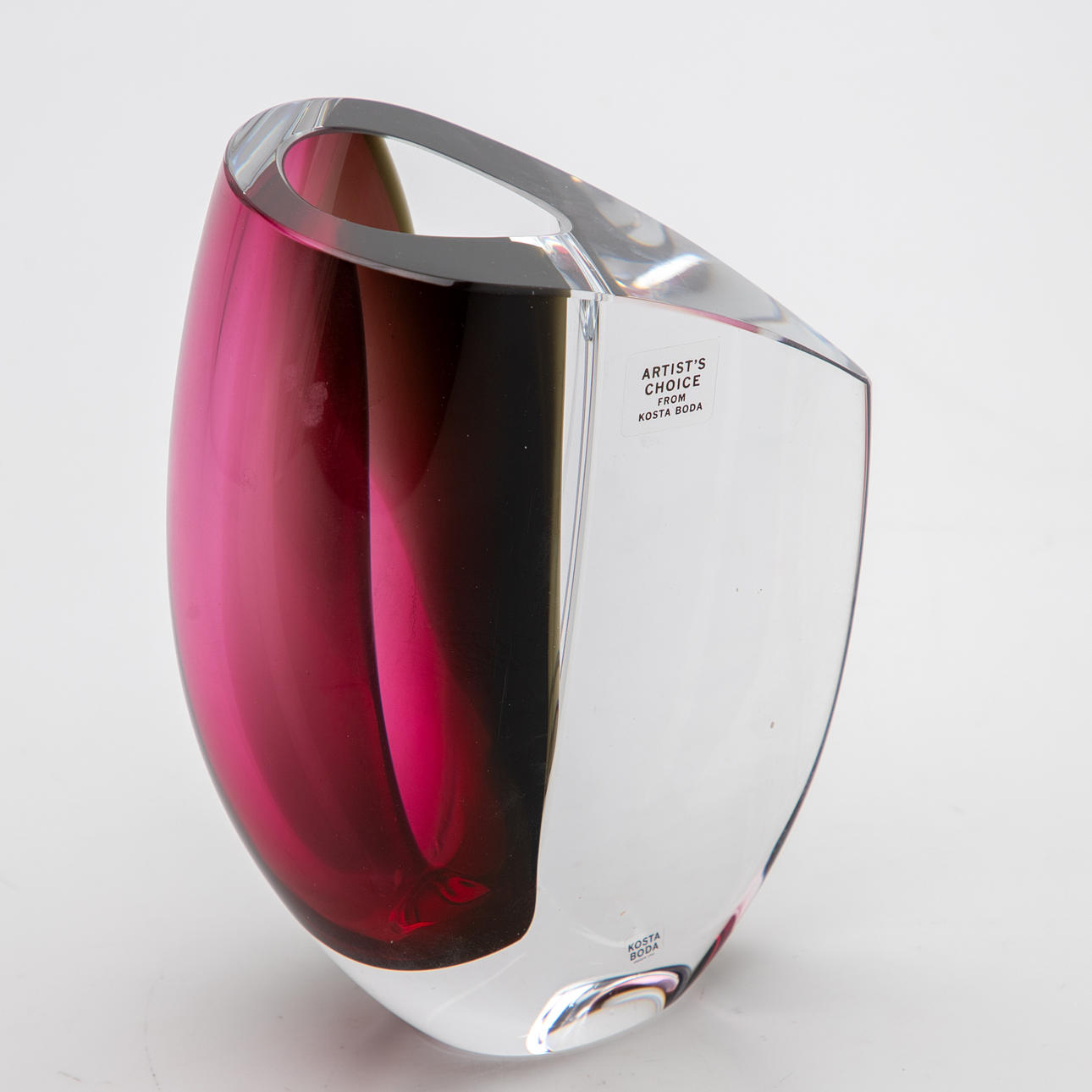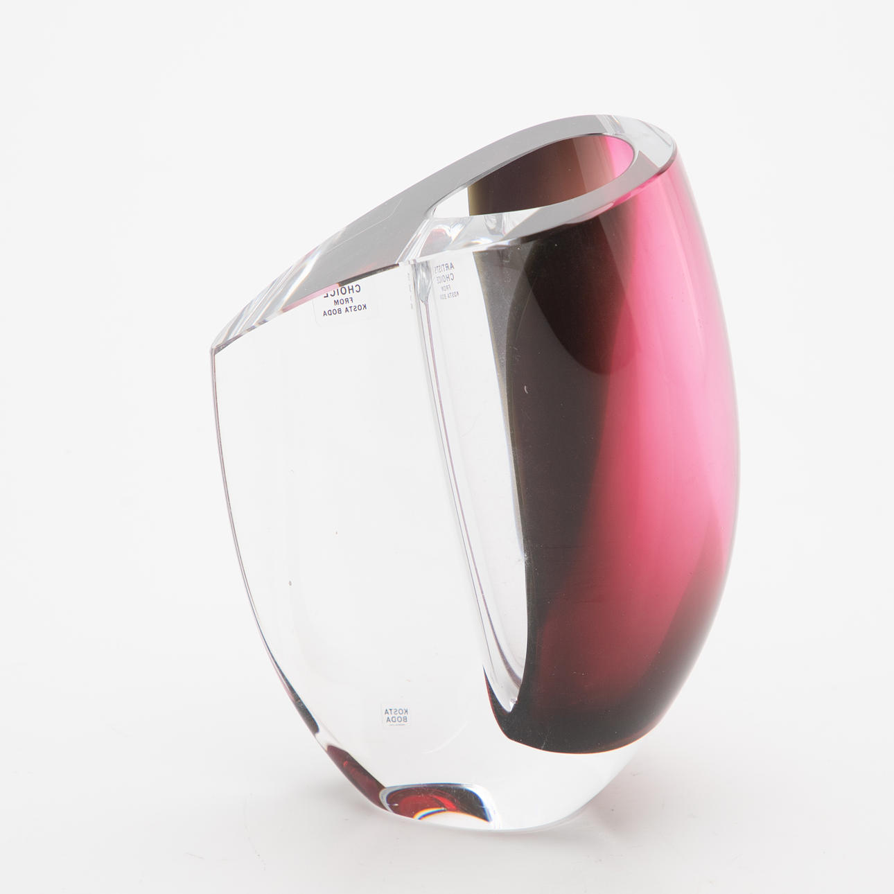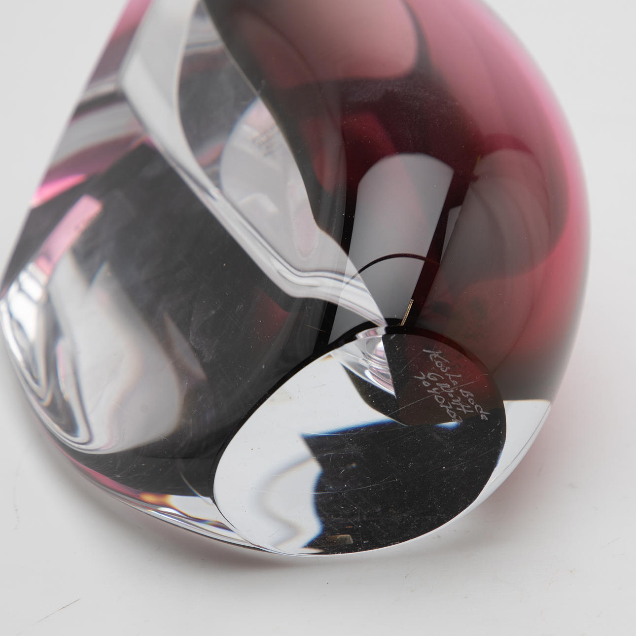 Design: 2000-talet. Kristallglas, färglöst med röd/grå toner. Inskriven i jord.