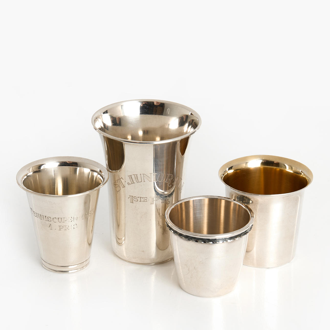 4075841. SILVER, 5 prispokaler, fat, skål, vas.