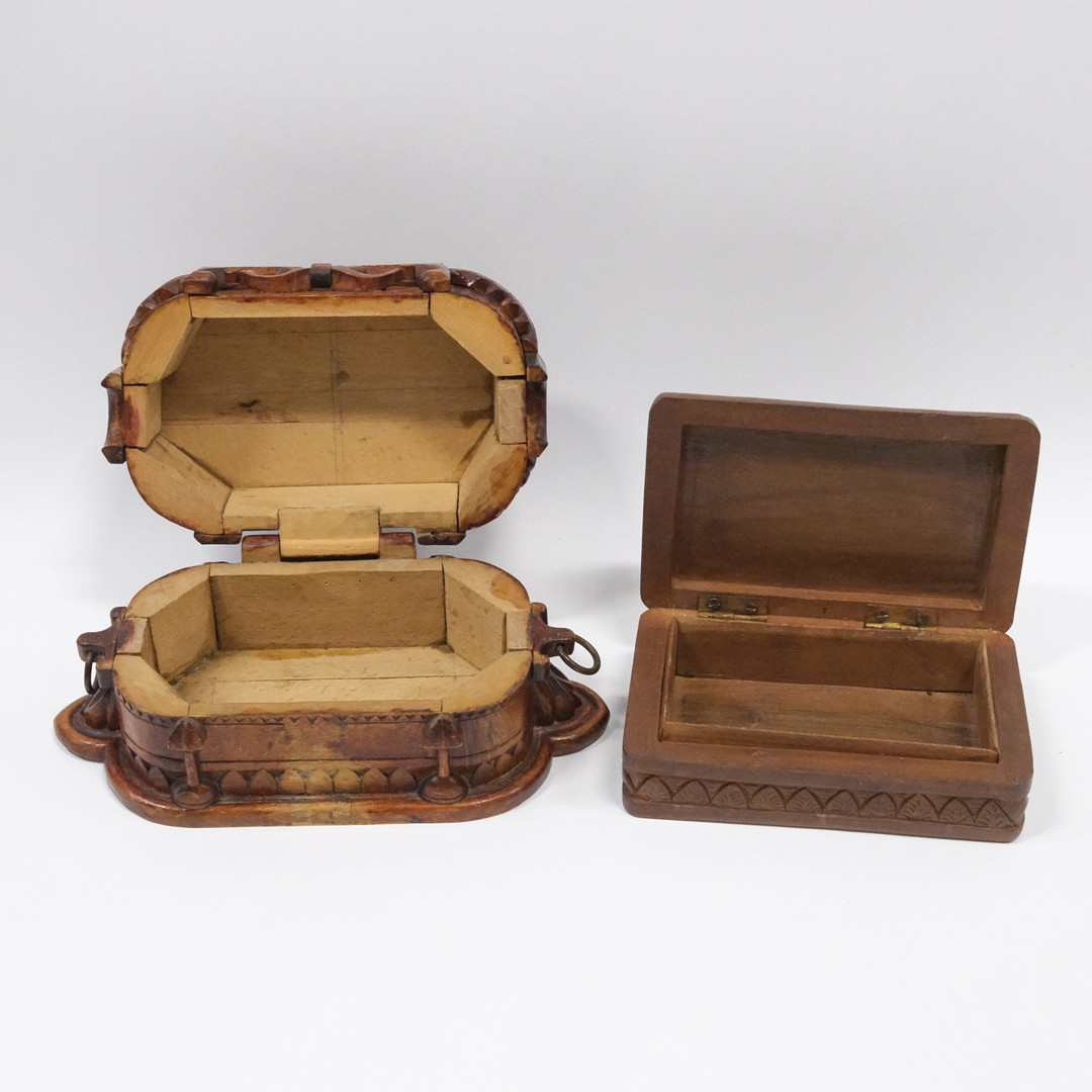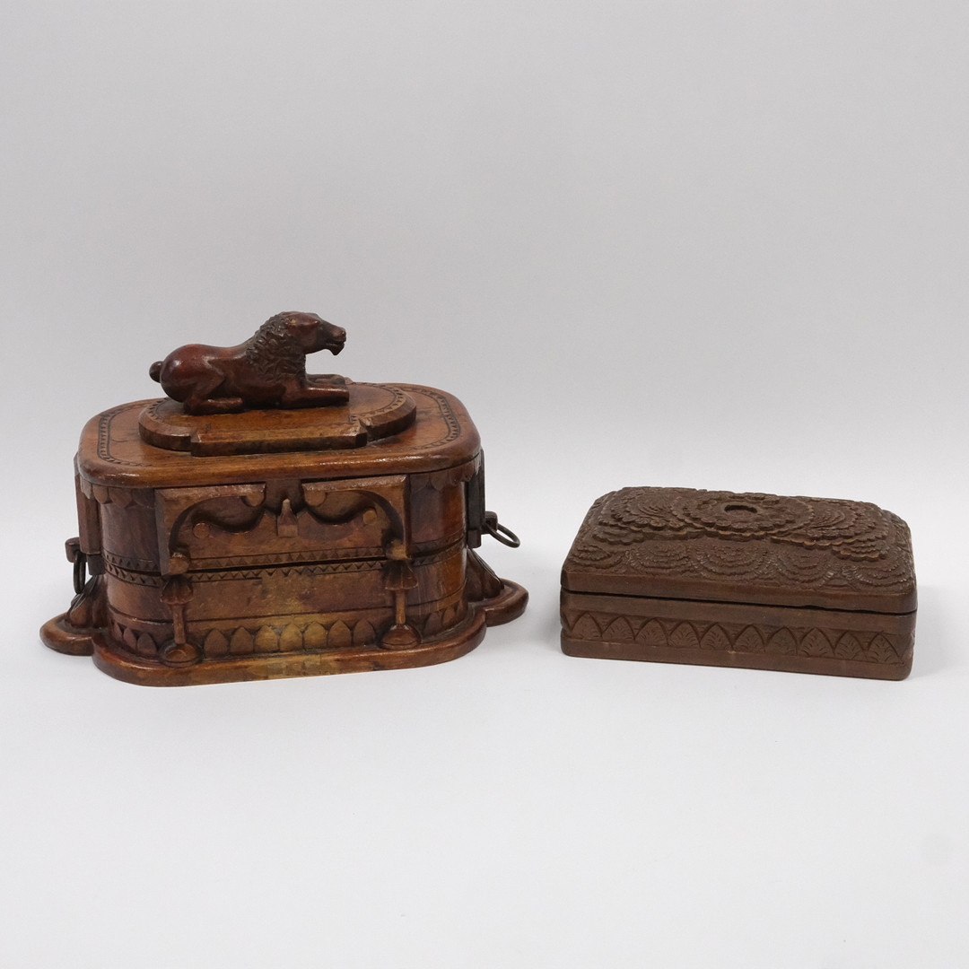 4077064. TVÅ ORIENTALISKA TRÄSKRIN, OMKRING 1900.
