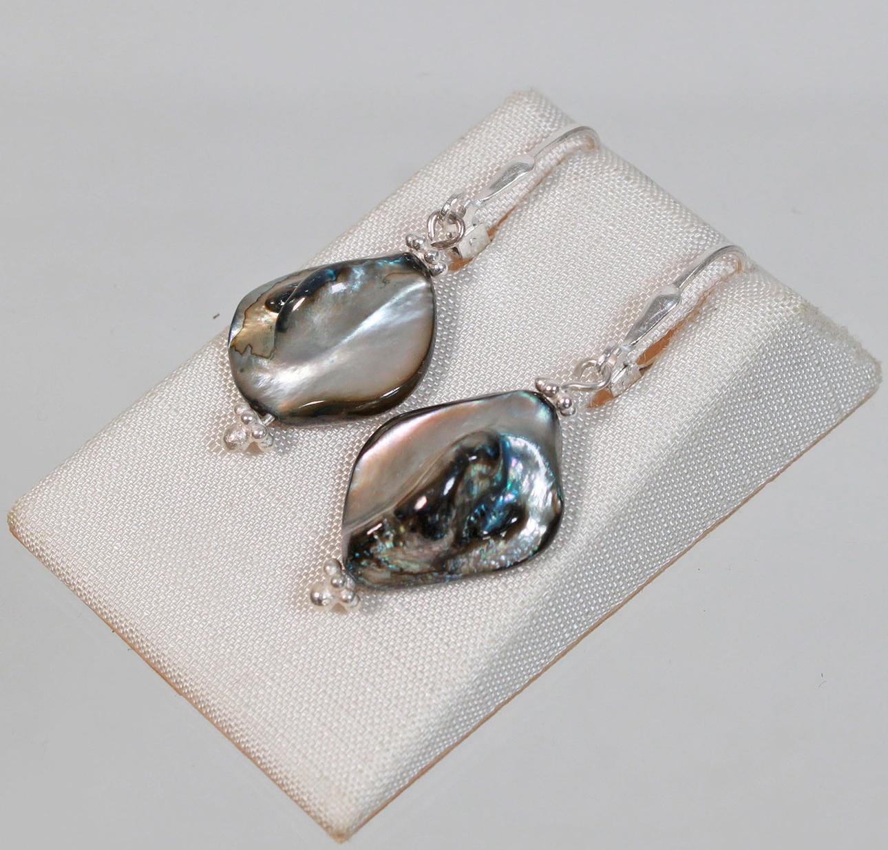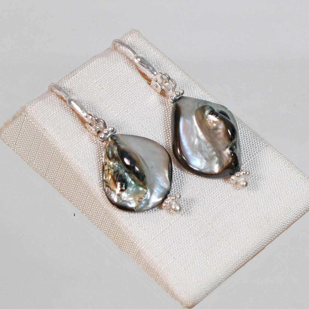Örhängen är gjorda av 925 silver, vikkrok med naturlig yta, längd ca. 4 cm, bredd ca. 1,5 cm.