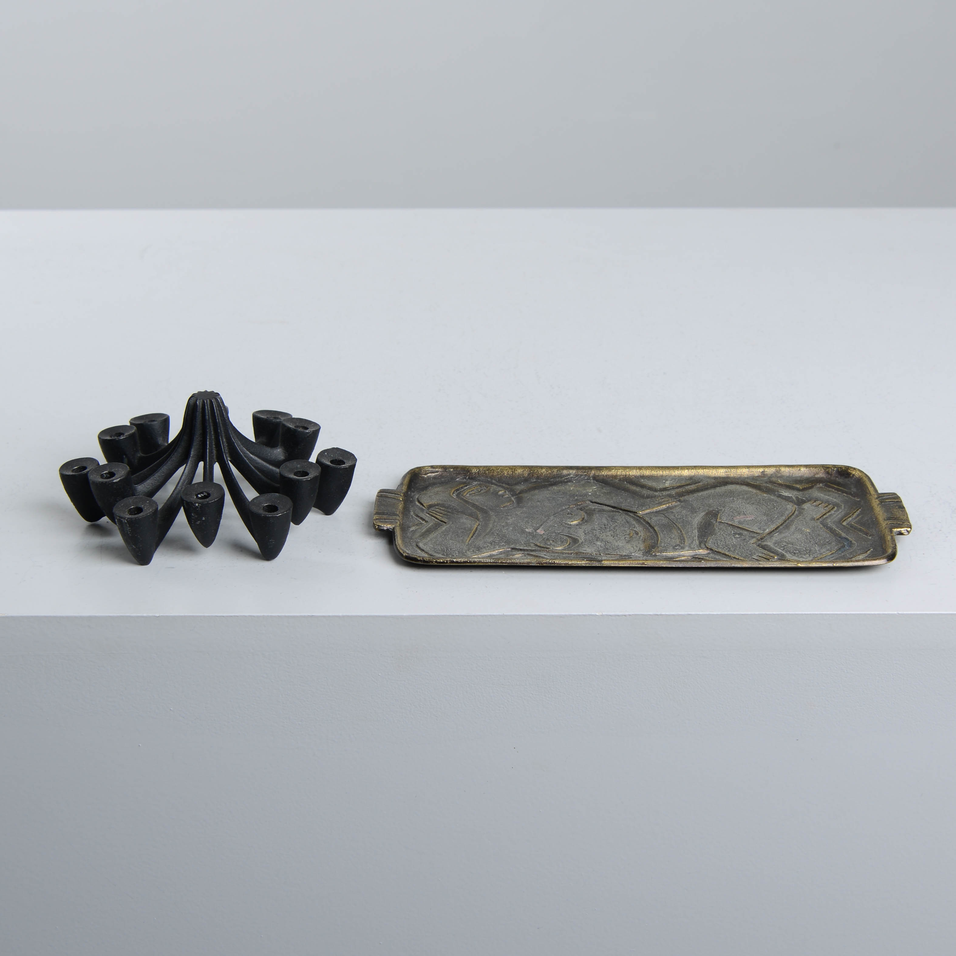 4078440. LJUSSTAKE OCH BRICKA, metall.