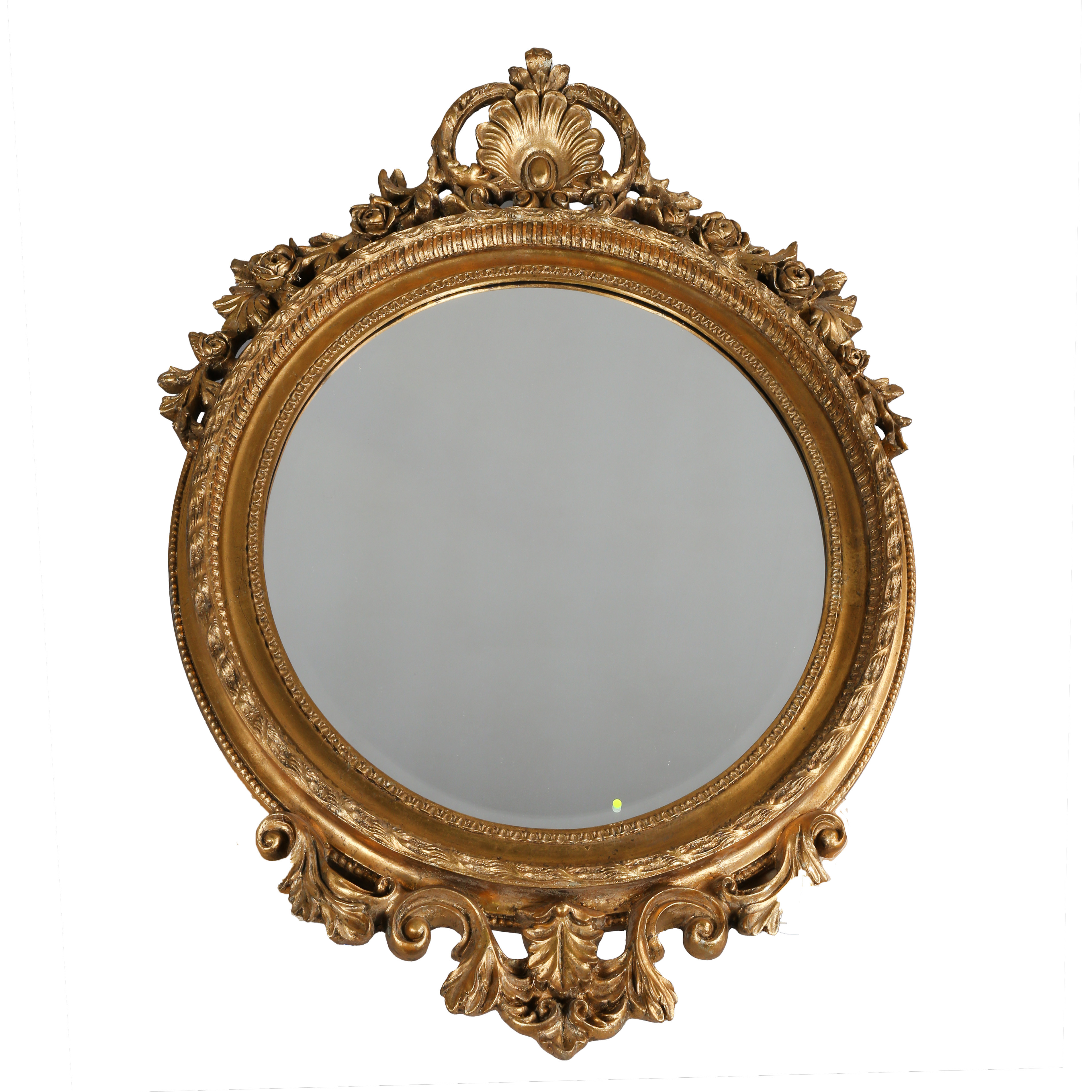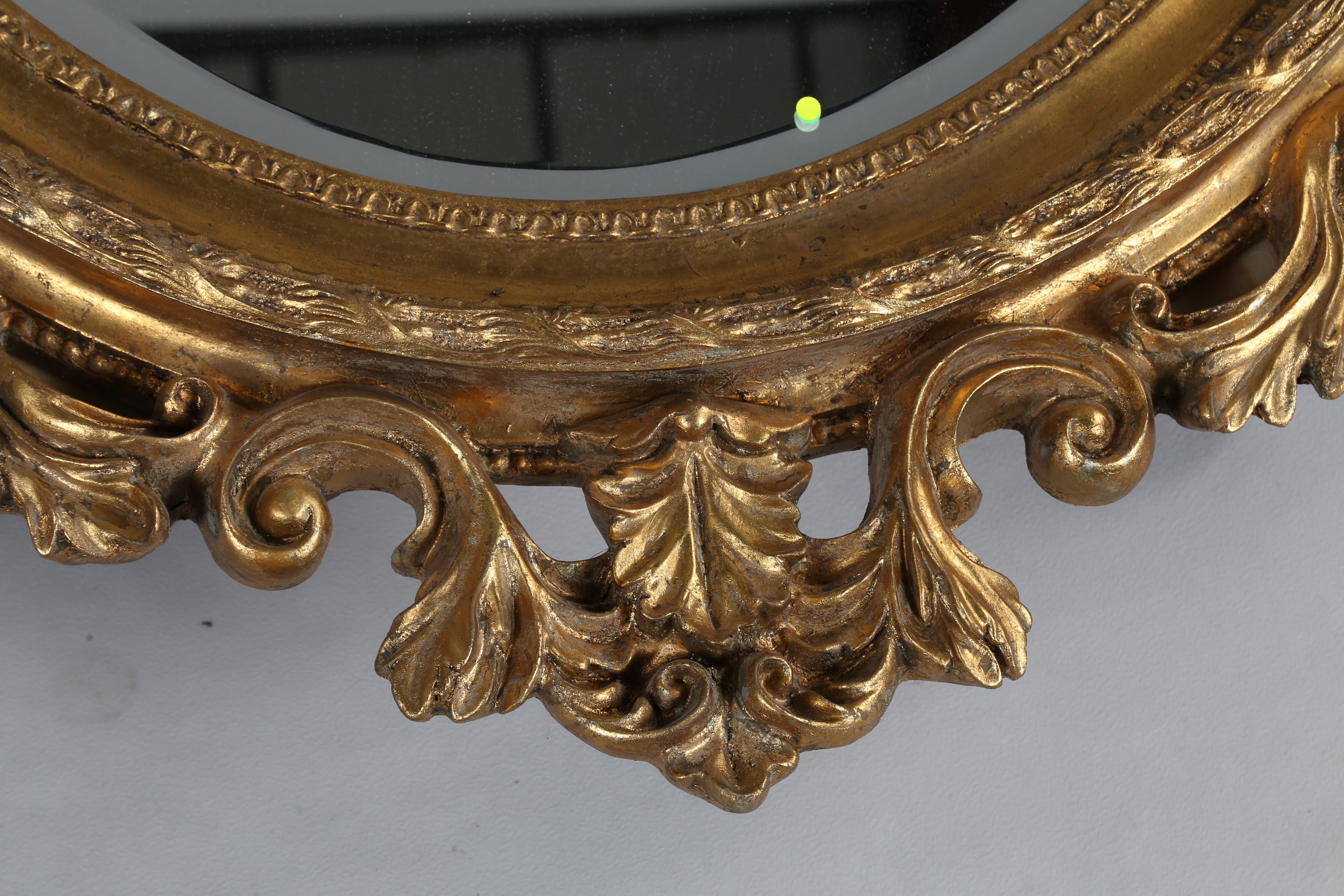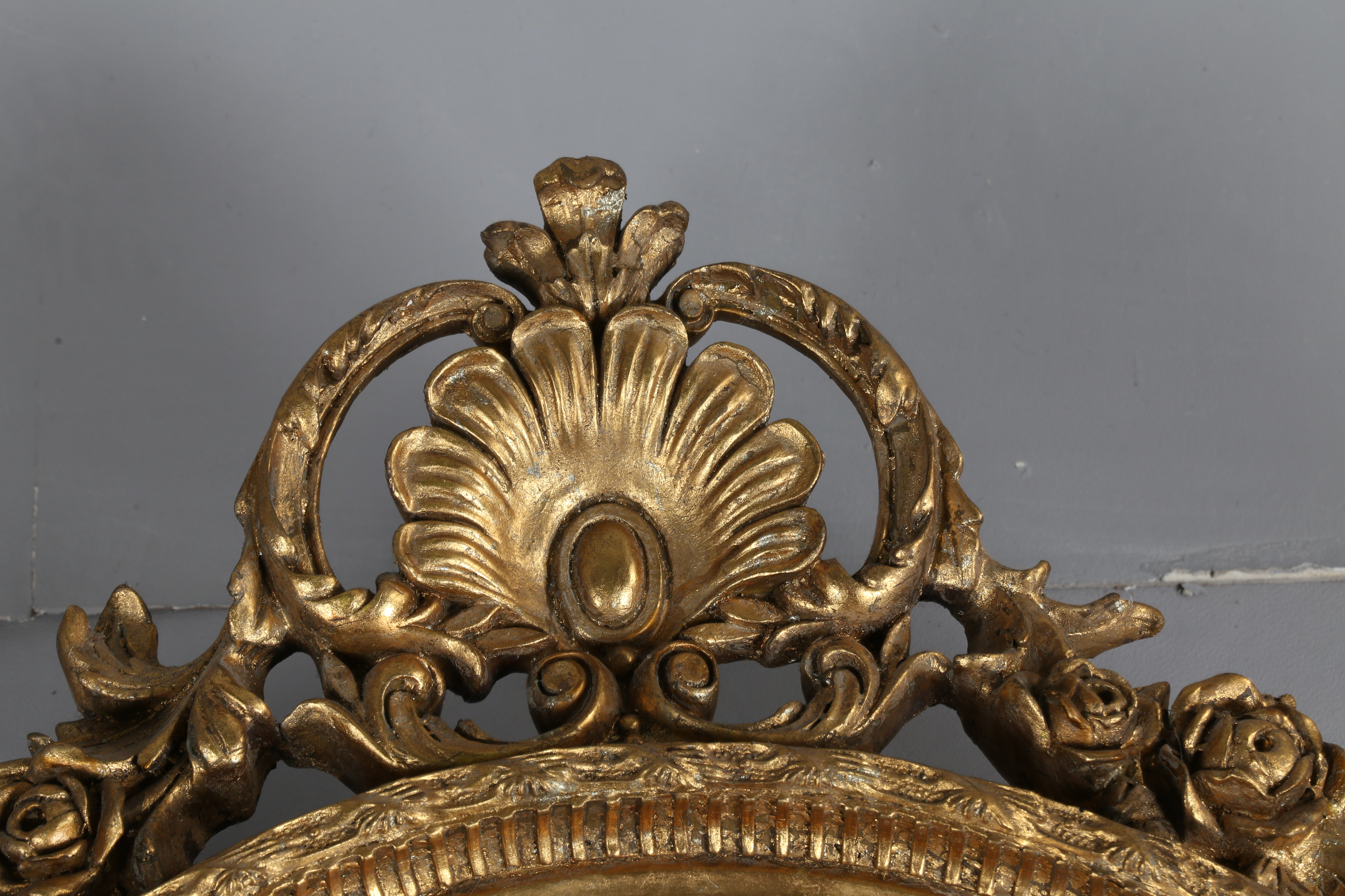 4078488. EN STOR FÖRGYLLD BLOMMIG OVAL VÄGGSPEGEL.